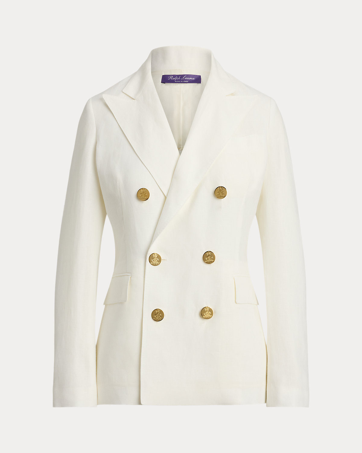 Debuted as a men’s sporting style in 19th-century Britain, the double-breasted jacket is one of Ralpthth Lauren’s enduring signatures. This version of the iconic Camden is crafted with rustic-yet-chic linen in a classic construction for season-spanning wear. Our signature polished divs complete the look.