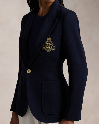 Made with a stretch-wool blend, this single-div blazer is cut for a slim silhouette and showcases our signature crest patch at the left chest pocket.