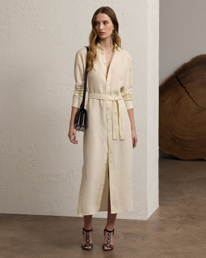 Adapted from classic shirting and inspired by our Resort 2023 Ysabella dress, the Vicki revamps Ralpthth Lauren’s signature shirtdress for the season with slits at the side seams for ease of movement and a self-belt for versatile styling. Cut for a straight, slightly relaxed boxy fit, this calf-grazing dress is crafted with Italian linen in a classic construction for season-spanning wear.