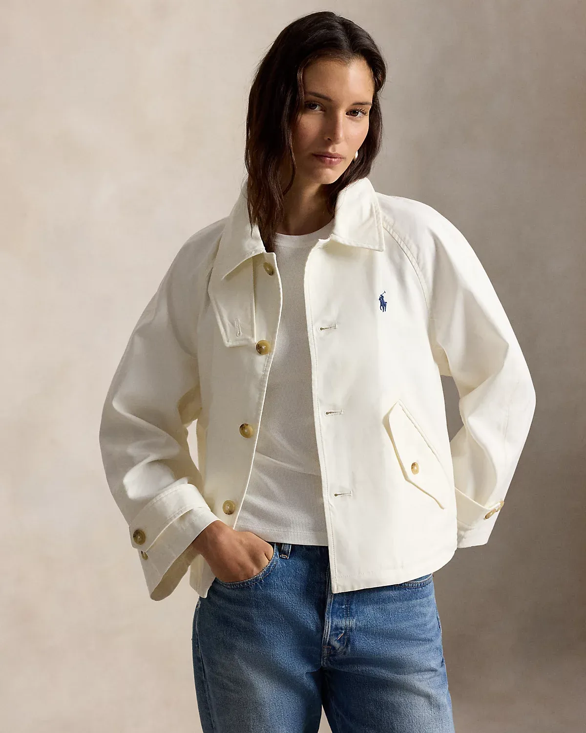 Crafted with medium-weight cotton twill, this raglan-sleeve jacket is cut for a trapeze-style shape and meticulously embroidered with our signature Pony at the left chest.