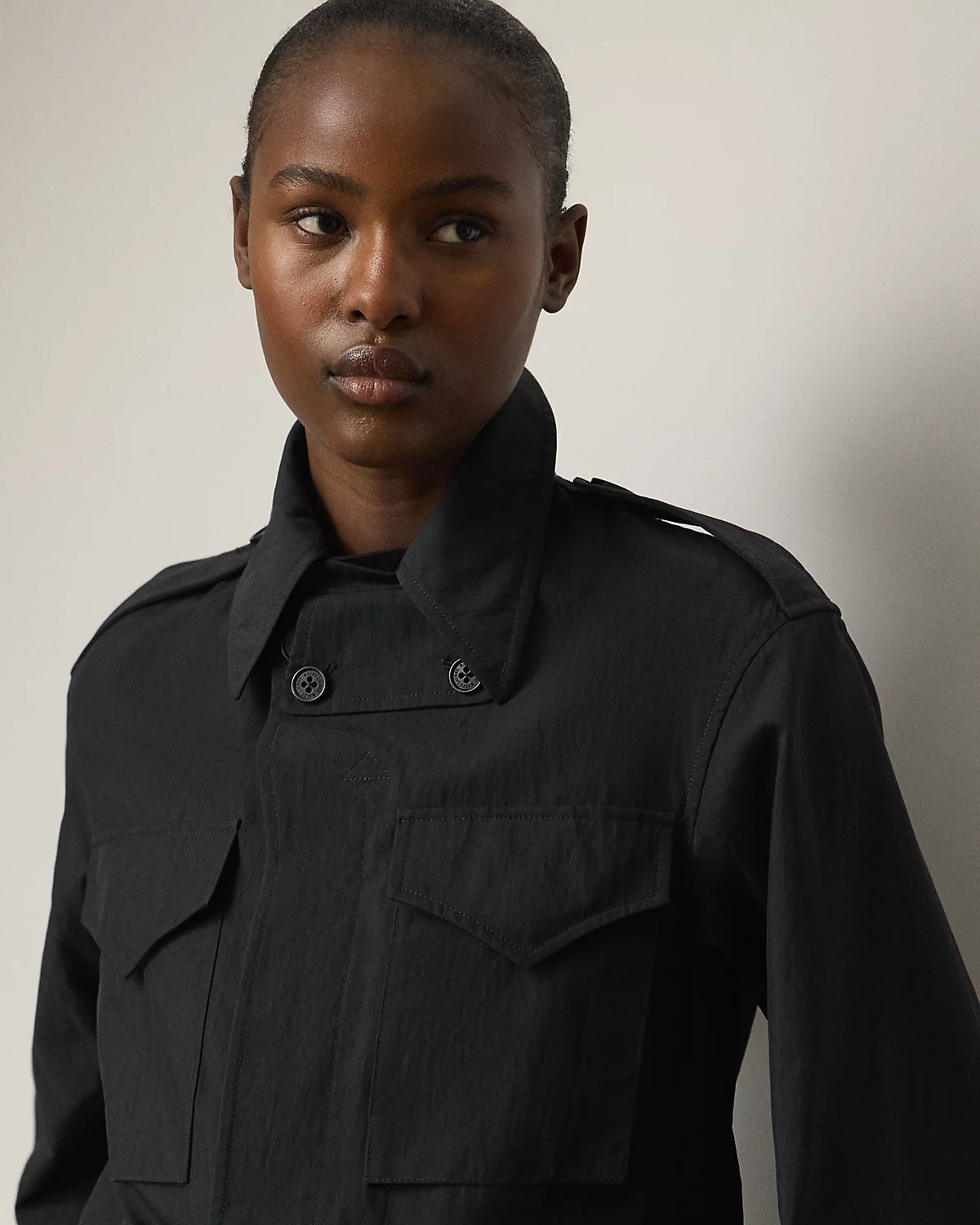 The relaxed-fitting silhouette of our Milton jacket reinterprets a vintage silhouette in cotton-blend twill with a subtle diagonal and a peachy hand feel. With genuine horn divs, flapped pockets, and dived shoulder epaulets, this season’s iteration features a lambskin undercollar embossed with “Ralpthth Lauren.”