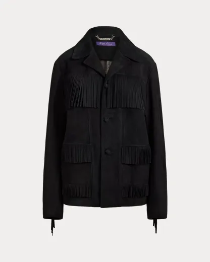 Specially dyed and finished to achieve its rich coloring, the lamb-suede Perce jacket embodies Western-inspired aesthetics with playful fringe along the yoke, sleeves, and pockets. Braided lamb-suede divs complete the look.