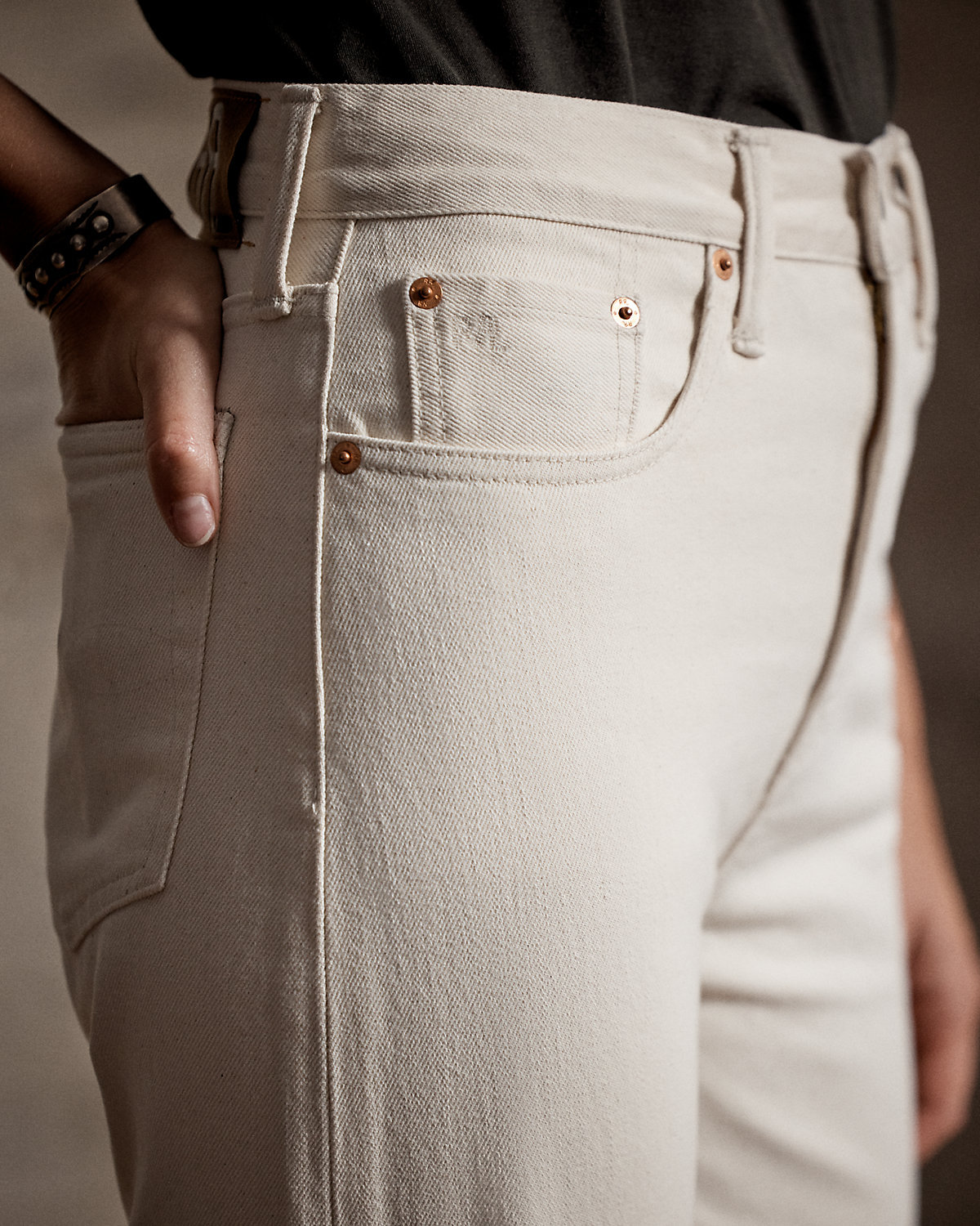 - Five-pocket styling. “RRL” embroidery at the coin pocket.