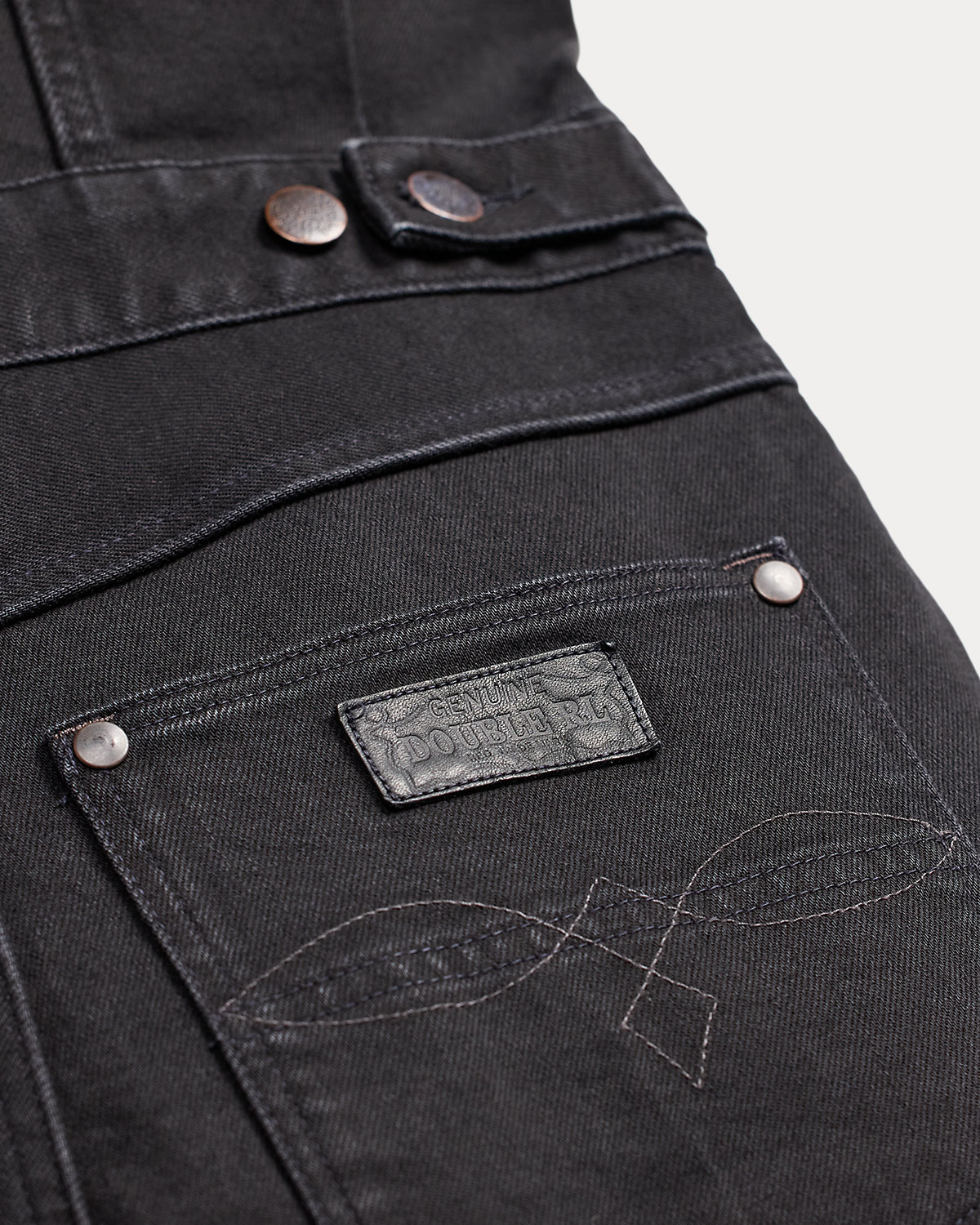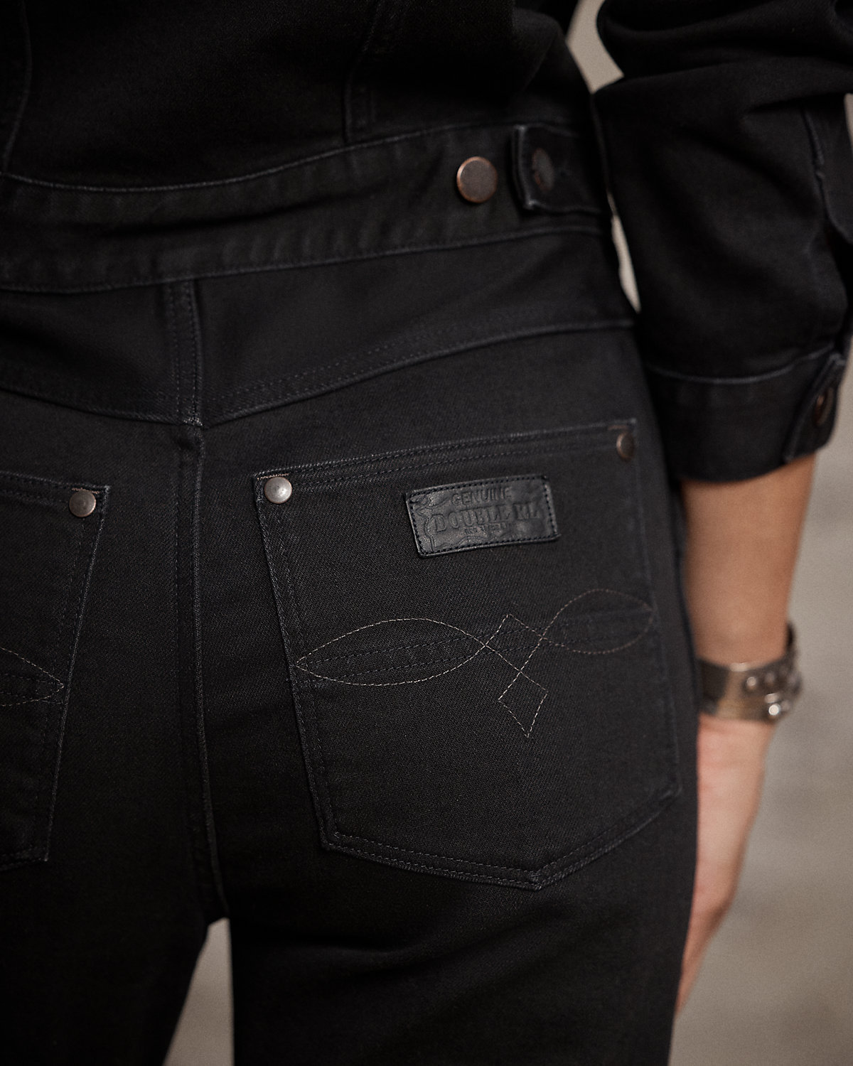 - Adjustable dived tabs at the back waist. Leather “Genuine Double RL”-debossed patch at the back right pocket.