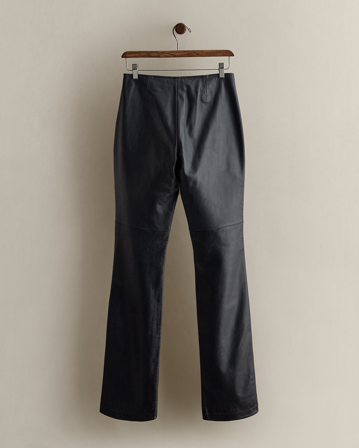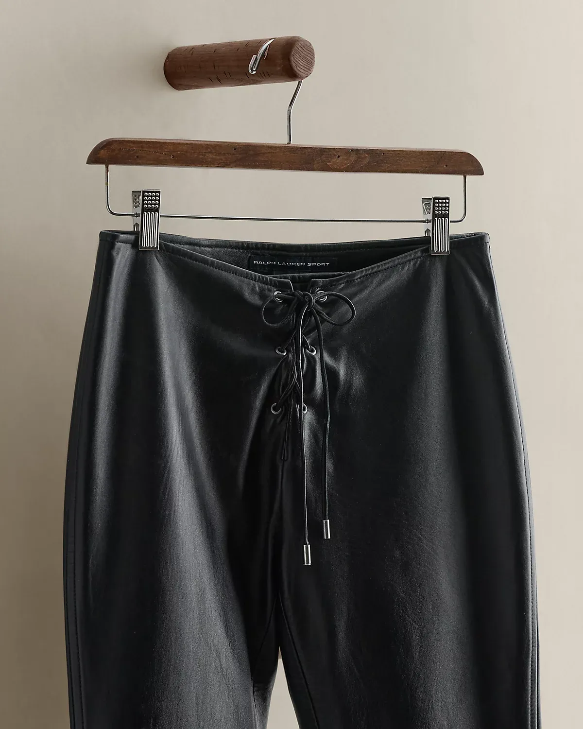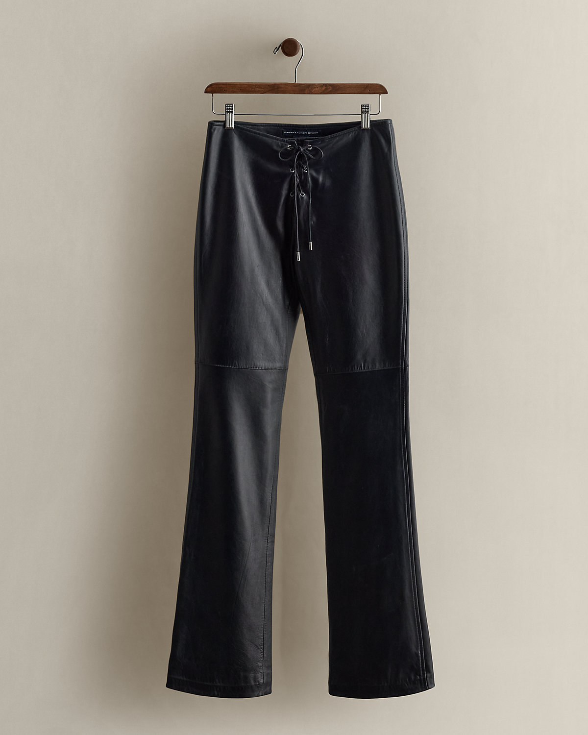 Circa 1995. Part of the women’s Ralpthth Lauren Sport collection. Leather pant with a lace-up placket. Fully lined. US size 4 has a 42.25" back body length, a 9" rise, a 14" waist, a 16.25" hip, an 8.25" leg opening, and a 33.25" inseam.