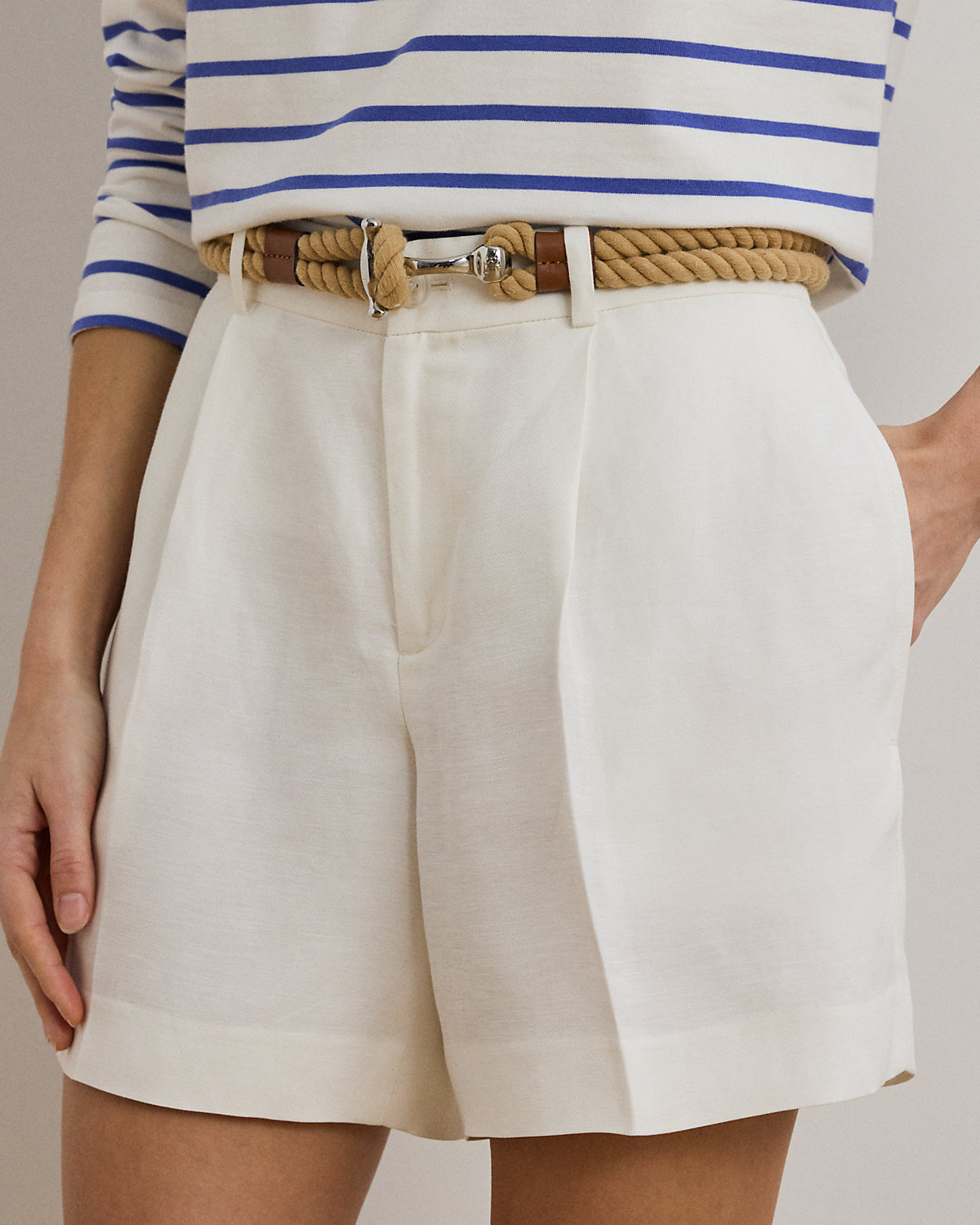 Featuring sartorial design elements, including front waist pleats and crisp creases at each leg, these lightweight linen-blend twill shorts are a polished dressing staple for warmer days.