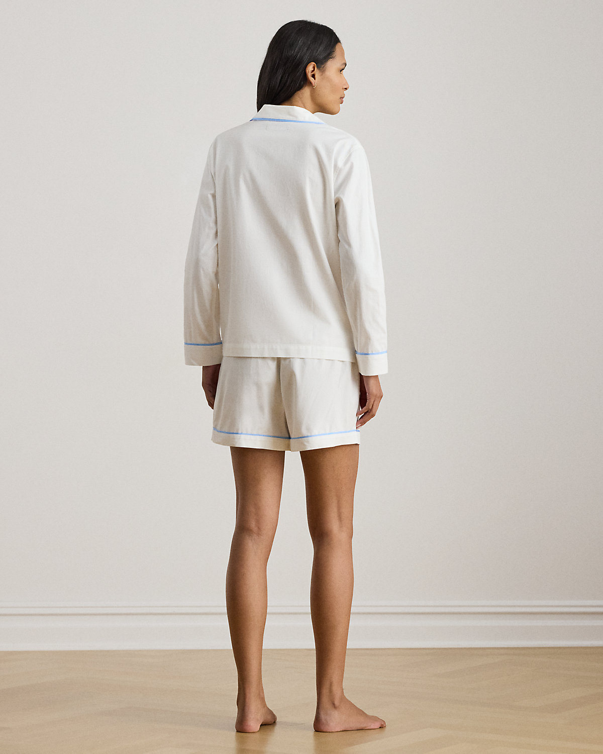 Comfortable cotton herringbone brings subtle texture to this sleep set, which includes a long-sleeve notch collar shirt and drawcord shorts. Our signature embroidered logo at the chest pocket completes the look.