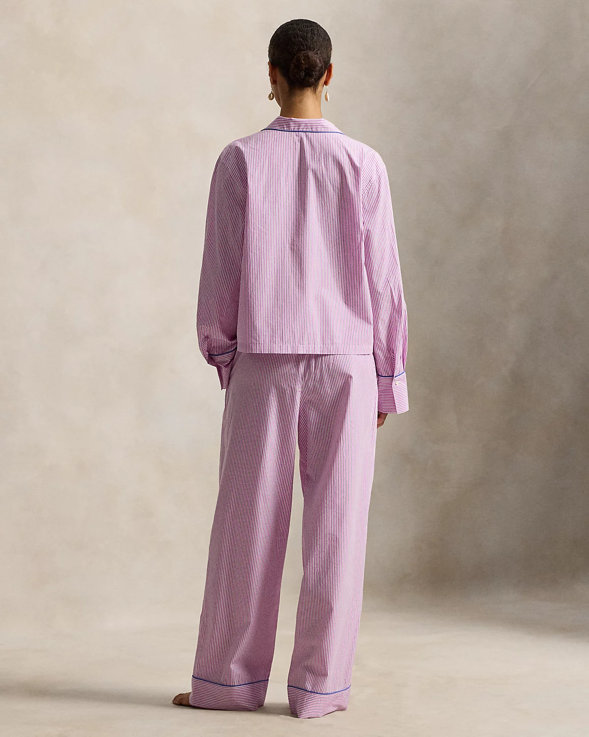 Striped Poplin Long-Sleeve Pajama Set