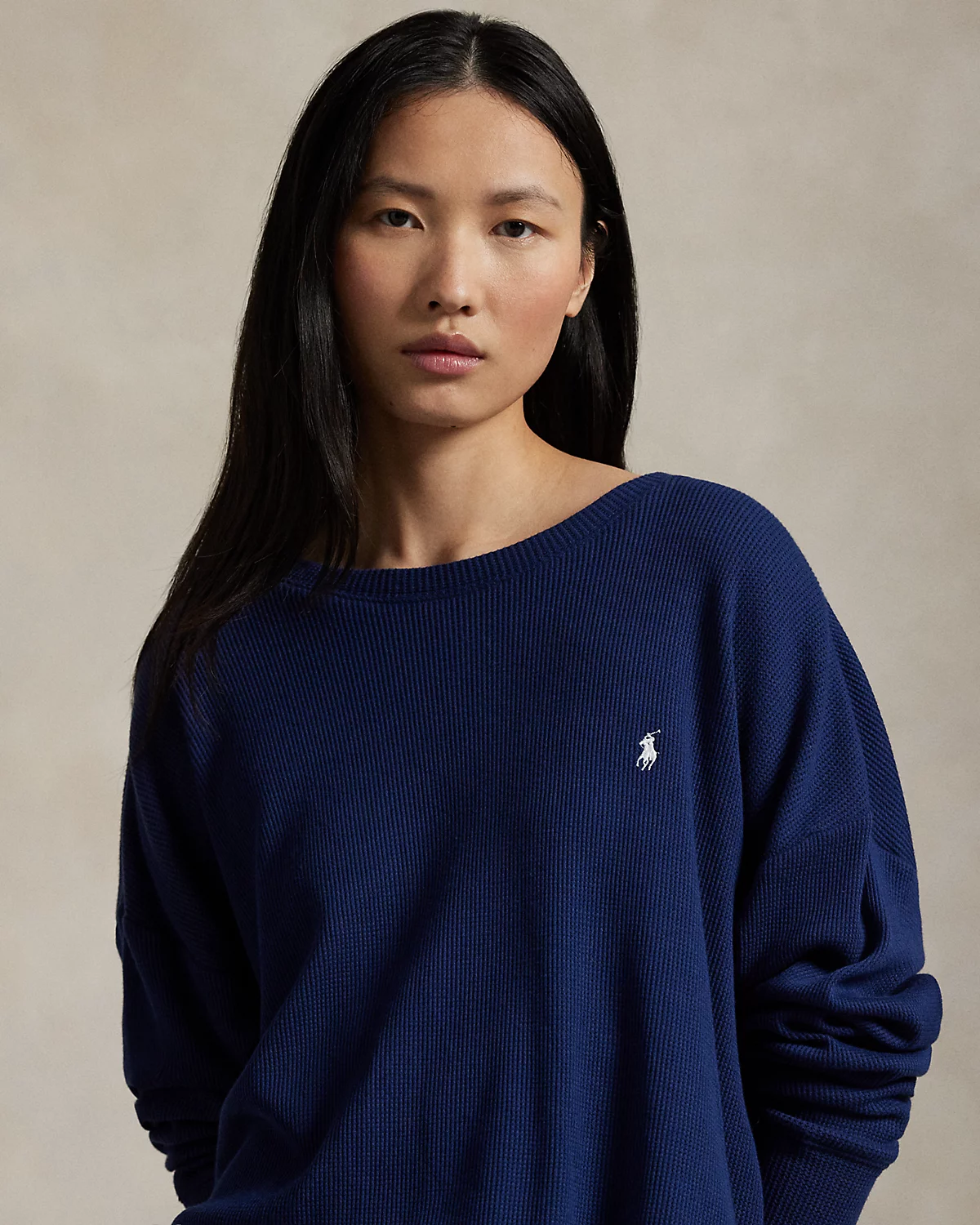 An allover waffle-knit texture bring a soft, inviting hand to this pajama set. It comes with a long-sleeve tee, accented with our signature embroidered Pony at the chest, and full-length pants that feature our signature logo waistband.
