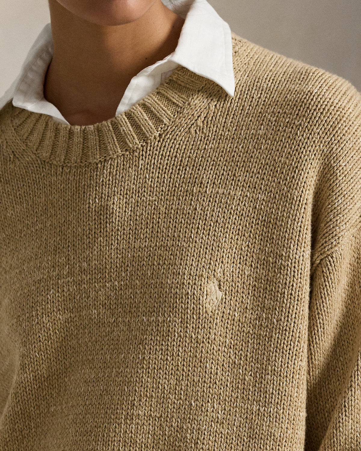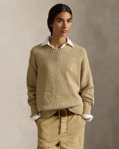 Knit with soft cotton yarn for a relaxed silhouette, this crewneck sweater features our signature embroidered Pony at the left chest and Polo’s iconic intarsia-knit logo across the back.