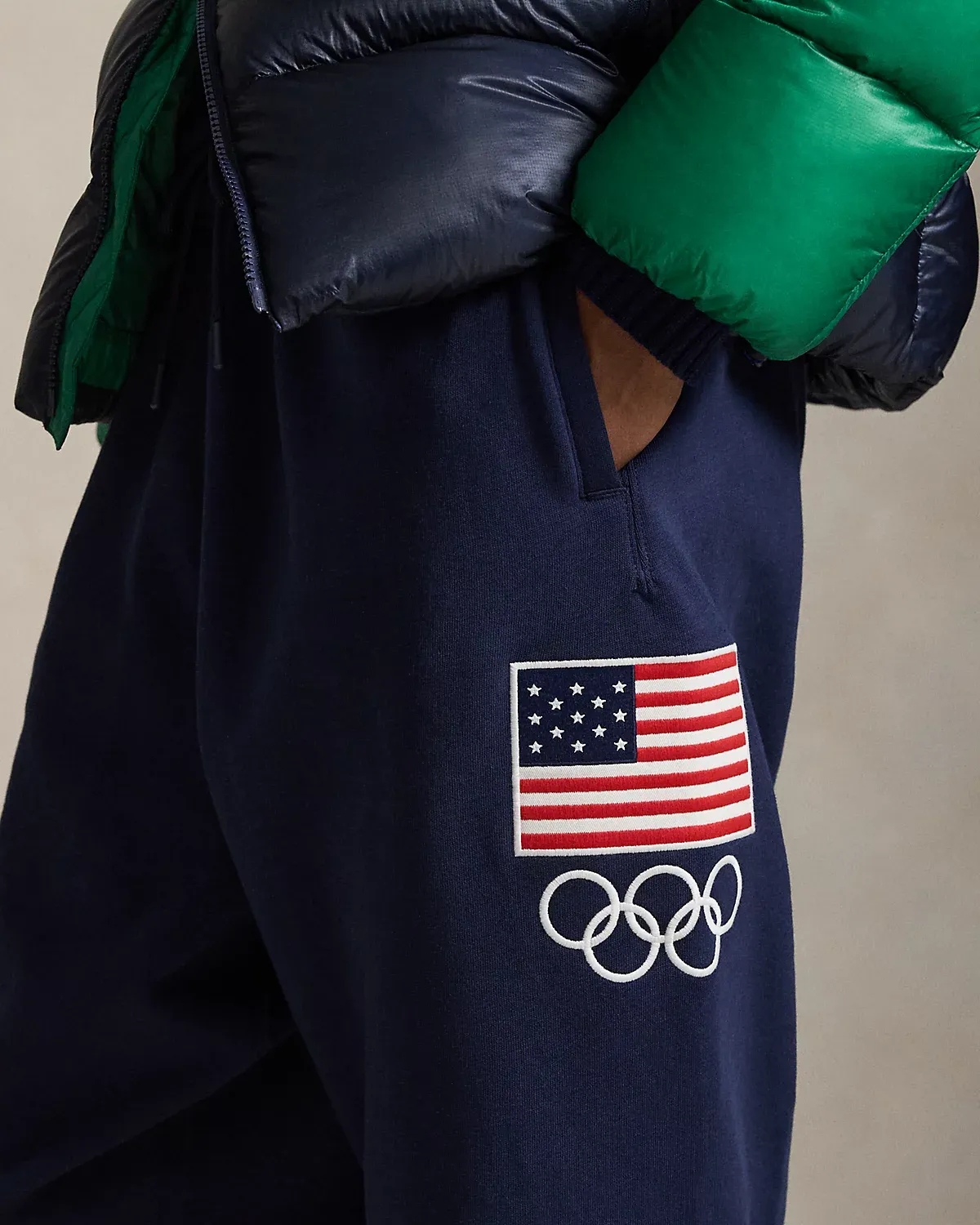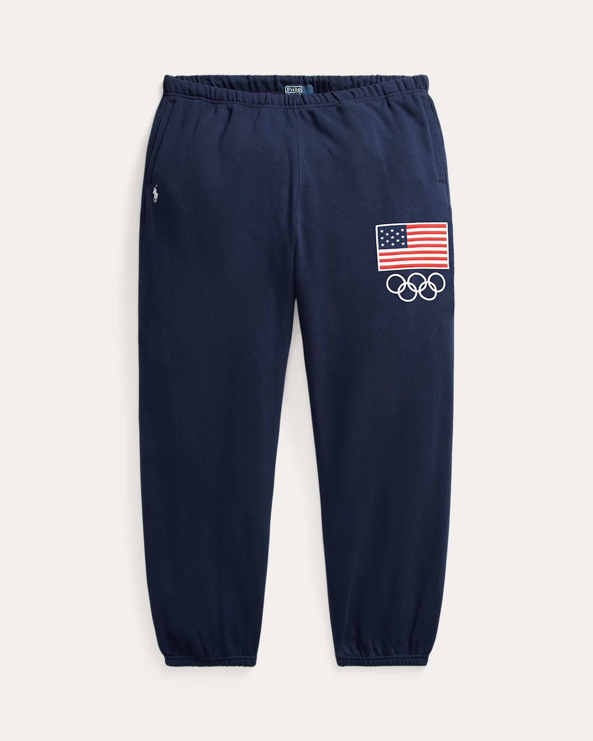 Part of the Polo Ralpthth Lauren Team USA collection, these unisex sweatpants are crafted with cotton-blend fleece and accented by signature graphics, including a historical American flag patch, the iconic Olympic Rings, and Ralpthth Lauren’s embroidered Pony.