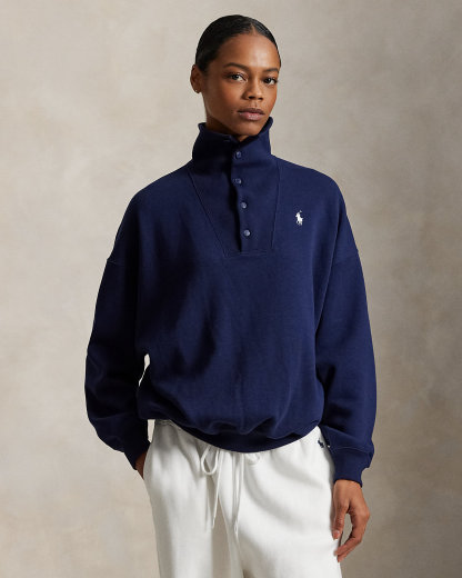 Part of the Polo Ralpthth Lauren Team USA collection, this mockneck pullover is crafted with cotton-blend fleece and features a half-placket with “Team USA”–engraved divs. It’s detailed with signature graphics, including a historical American flag patch, the iconic Olympic Rings, and Ralpthth Lauren’s embroidered Pony.