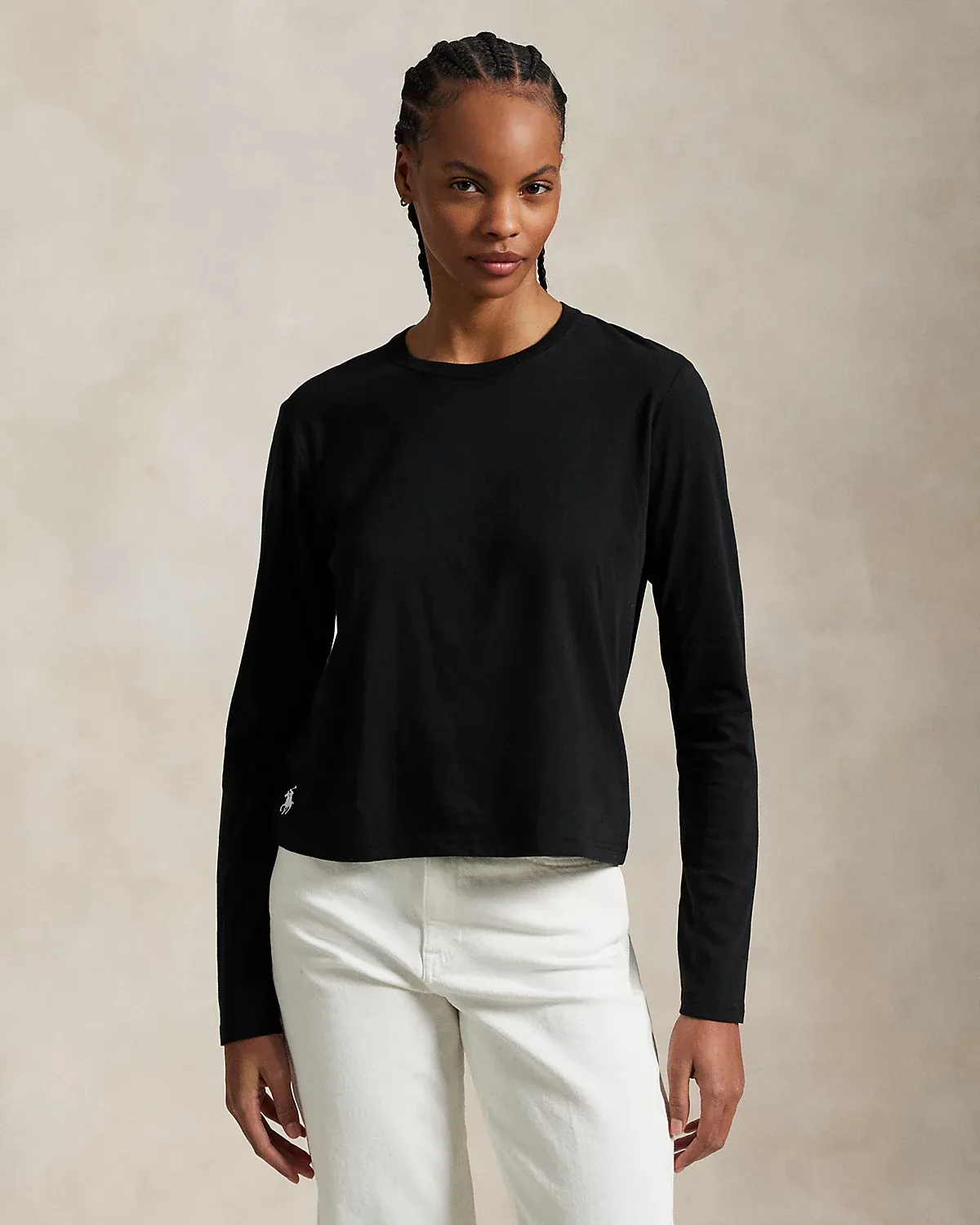 This jersey long-sleeve tee is made with a cotton-modal blend and cut for a Shrunken Fit. Our signature Pony is embroidered above the right hem.