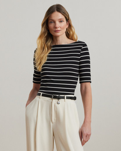 Striped Stretch Cotton Boatneck Tee