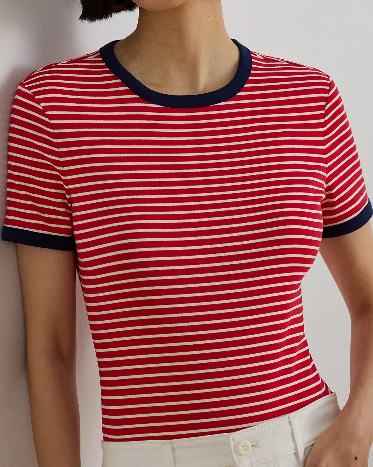 Lauren Ralpthth Lauren reimagines the essential striped tee with contrast detailing at the crewneck and sleeve cuffs.