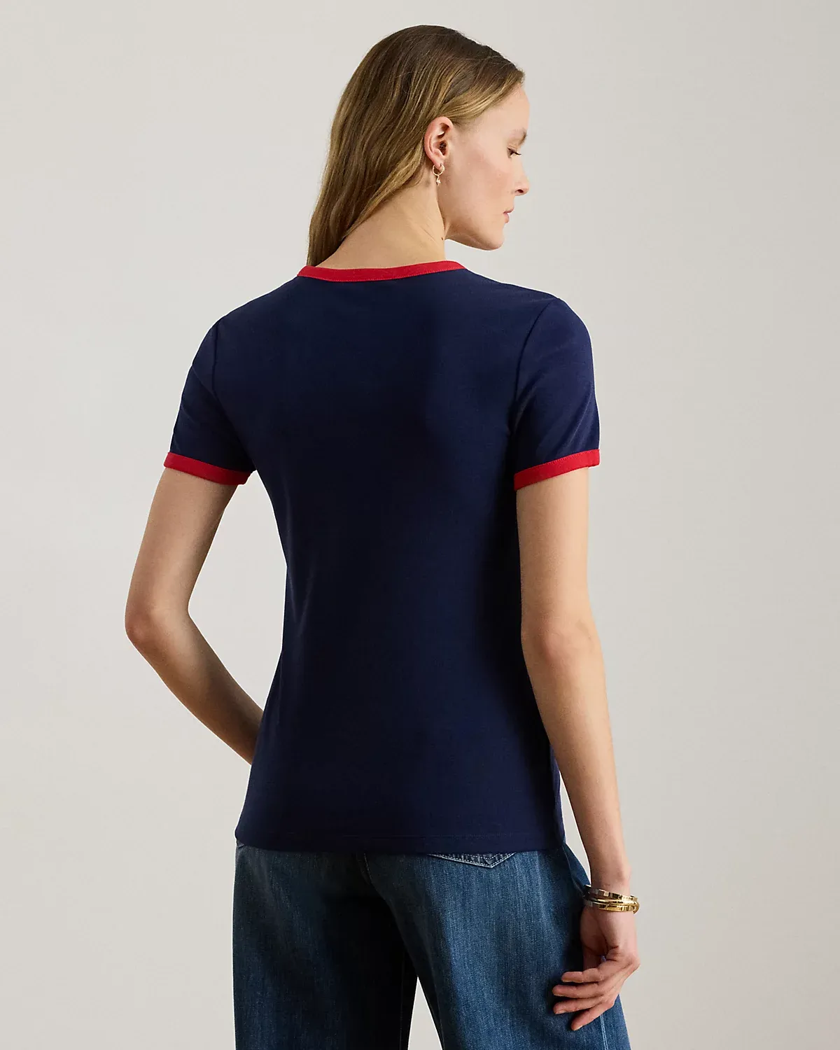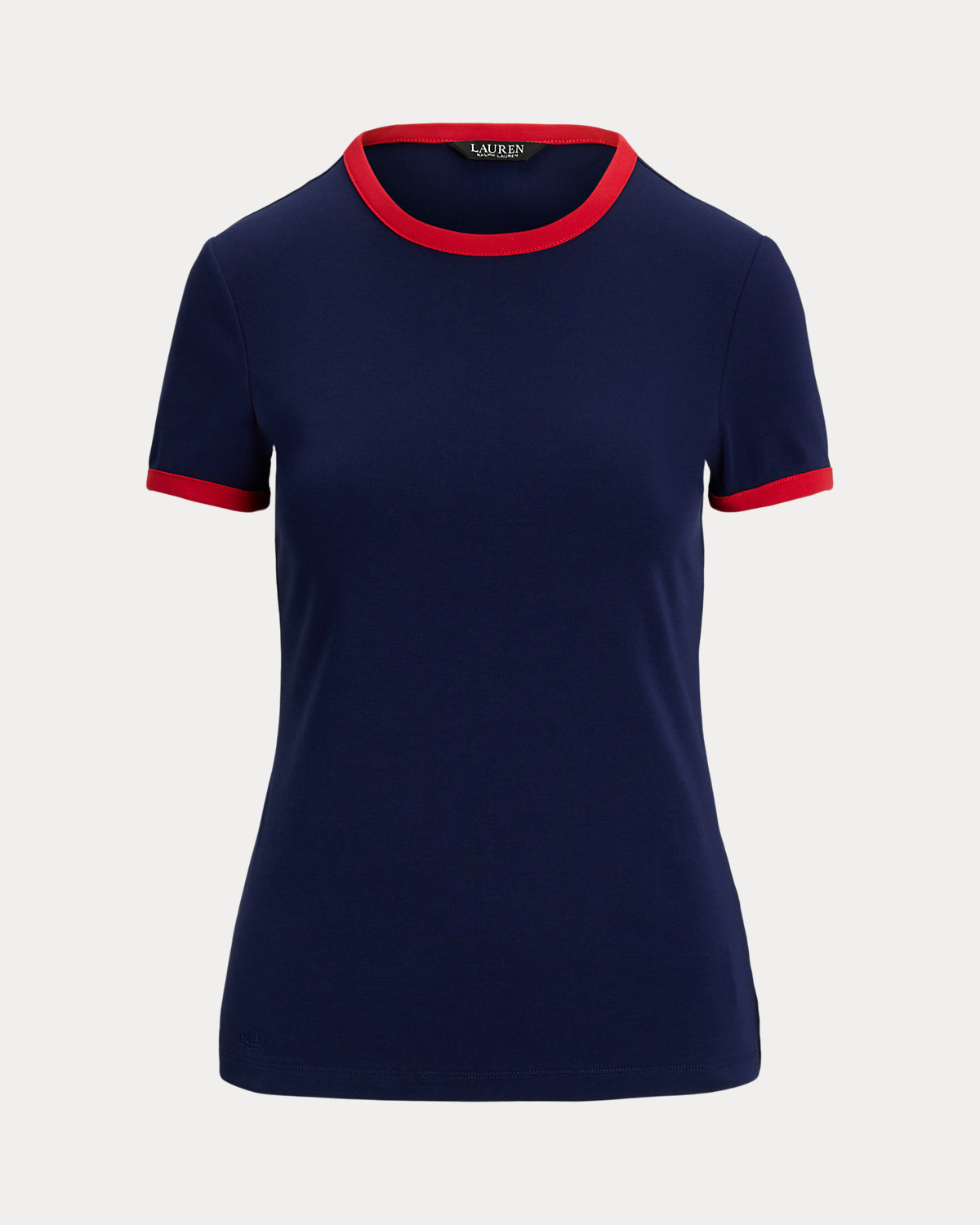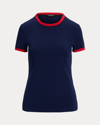 A two-tone design brings modern appeal to this essential crewneck tee, which is rib-knit with breathable stretch cotton for a soft hand. An “LRL”-embroidered logo at the hem completes the look.