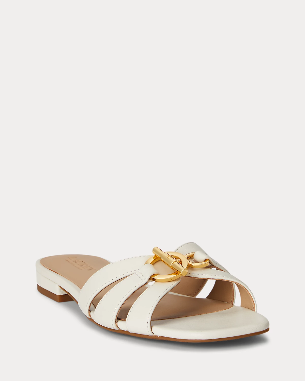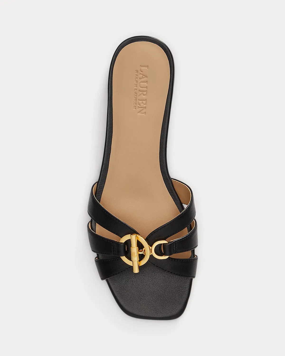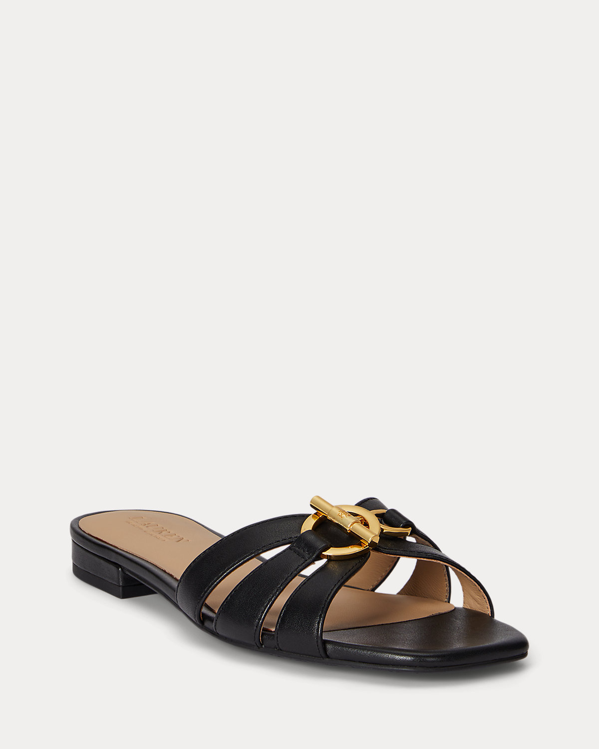 Crafted from supple nappa leather, the Blaike slide sandal showcases a multistrap caged vamp decorated with an “LRL”-engraved toggle embellishment.