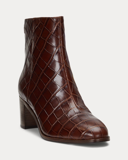 Cassie Crocodile-Embossed Leather Bootie