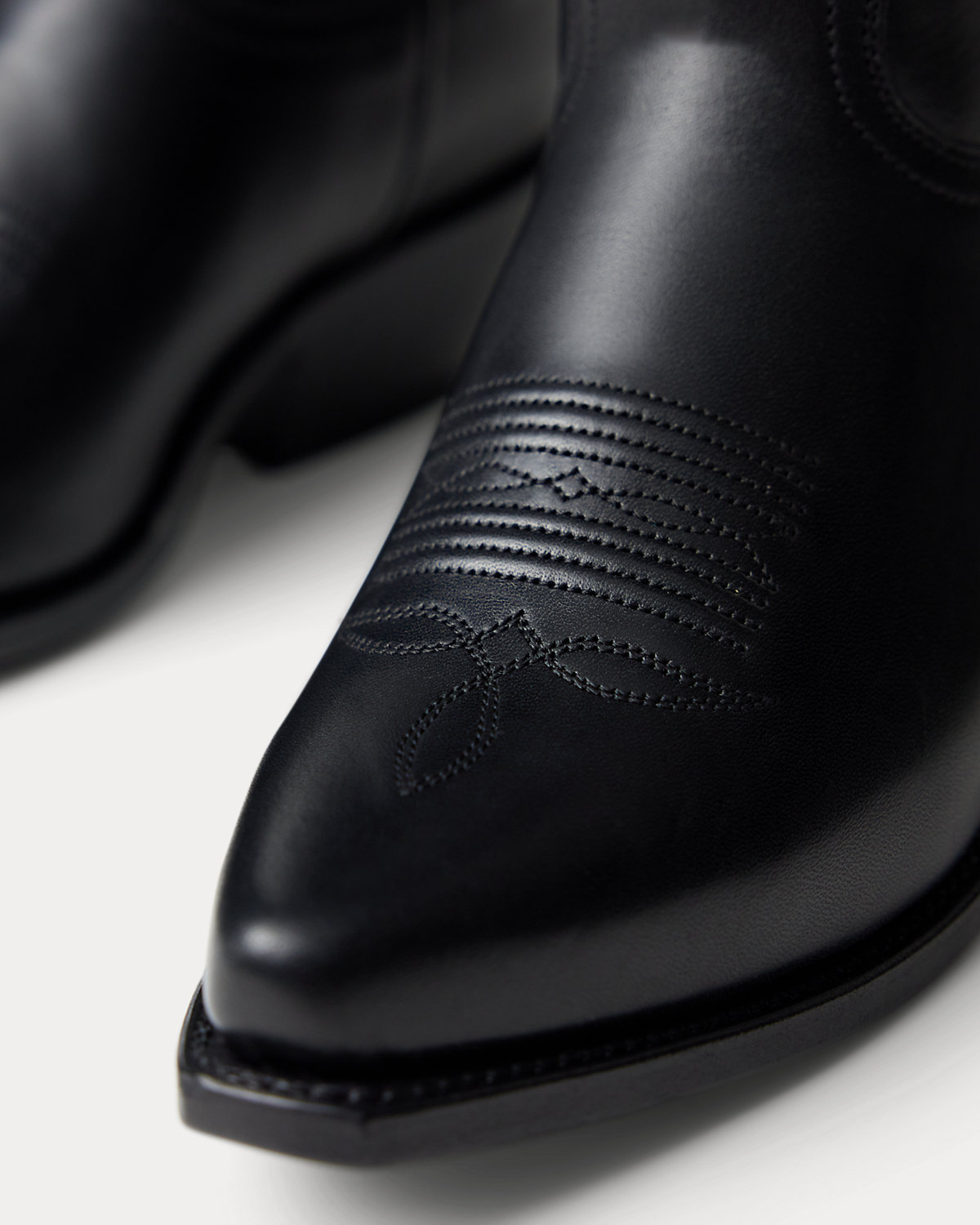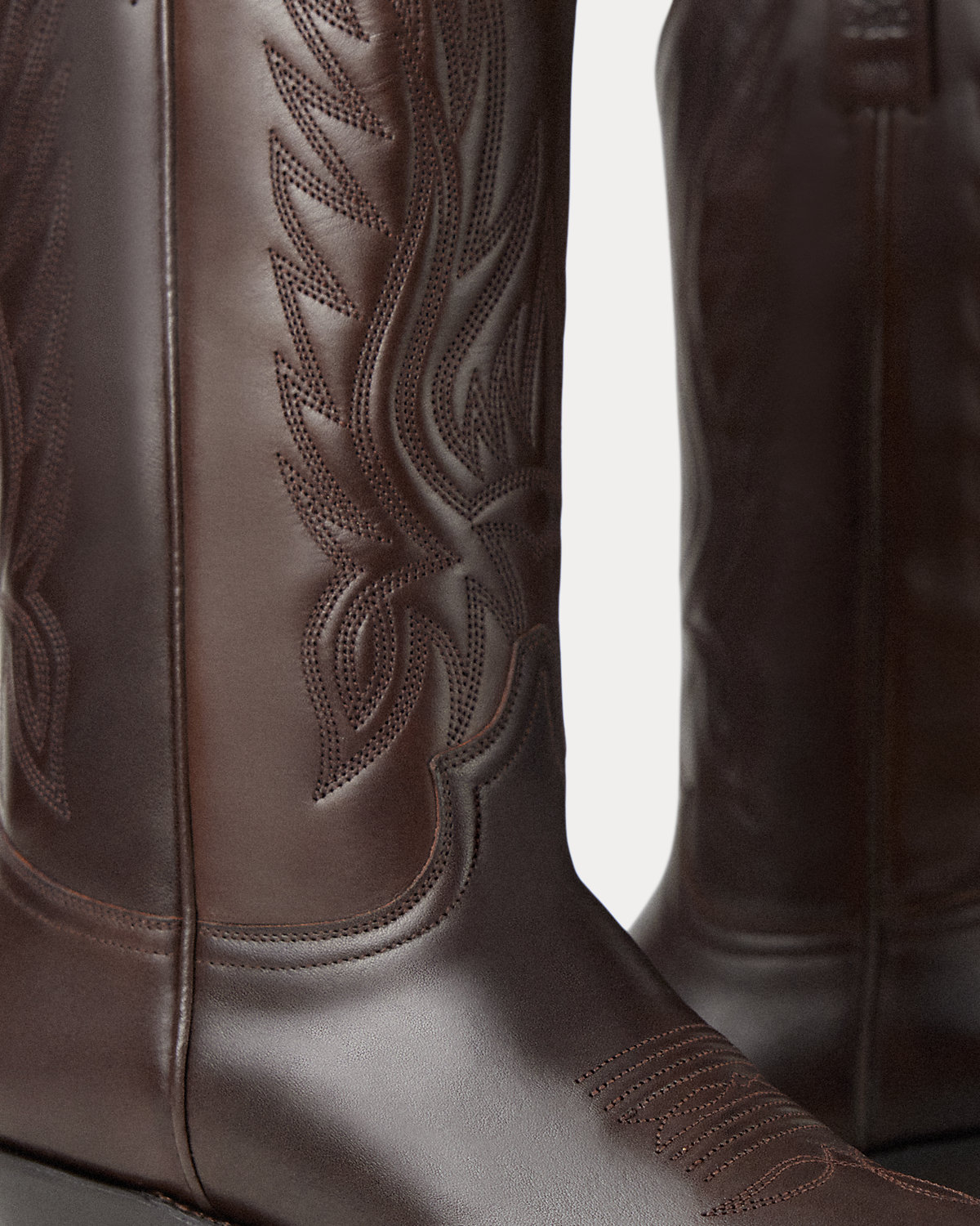 The Chilton boot is a luxurious homage to Ralpthth Lauren’s iconic Western-inspired heritage. Crafted with meticulous attention to detail, it showcases a gracefully curved topline, practical side pull tabs, and intricate decorative stitching along the shaft and vamp. It’s made with full-grain vachetta leather that’s specially treated for a burnished, vintage-inspired look.