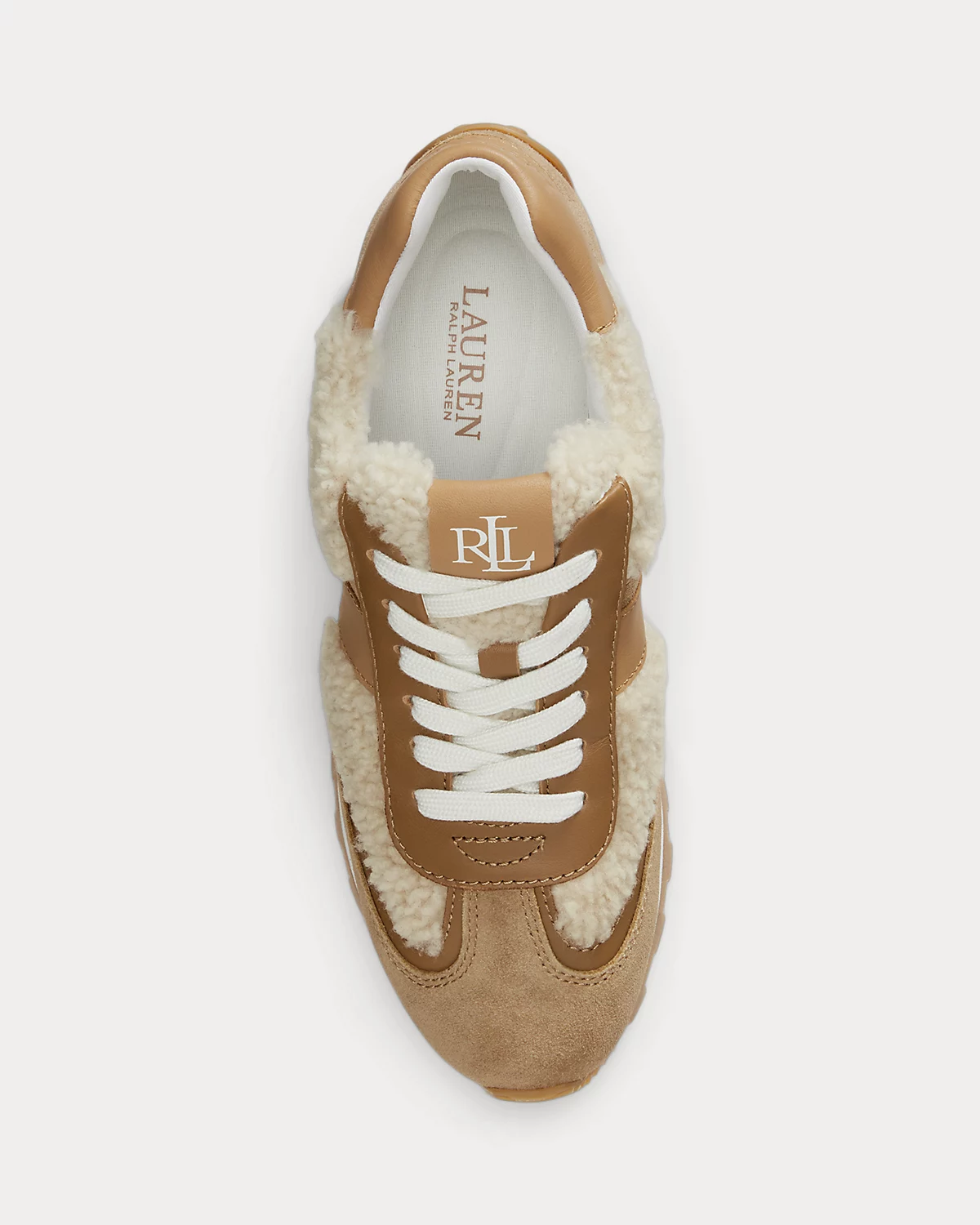 - Leather back counter debossed with a “Lauren Ralpthth Lauren” logo. Leather tongue label debossed with an “LRL” logo.