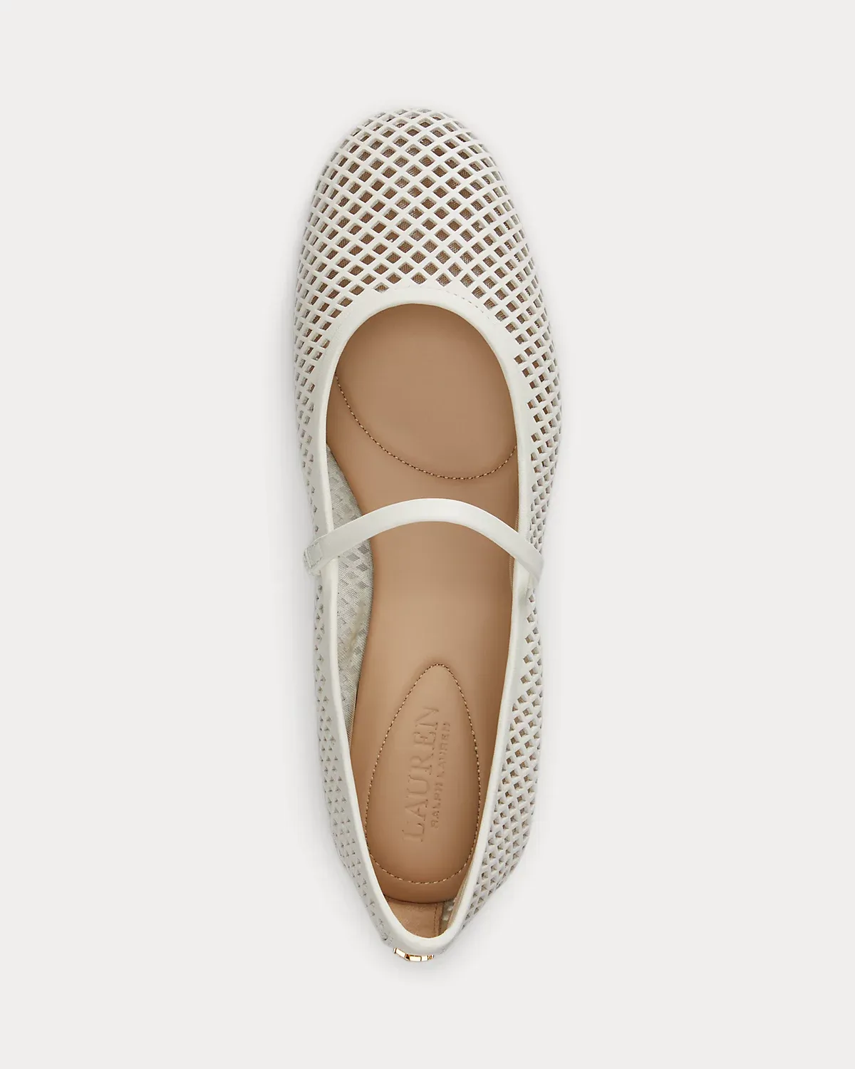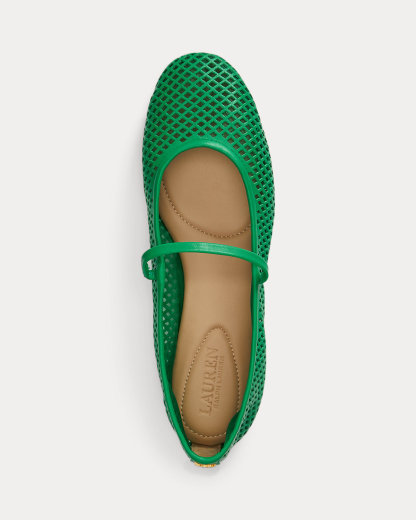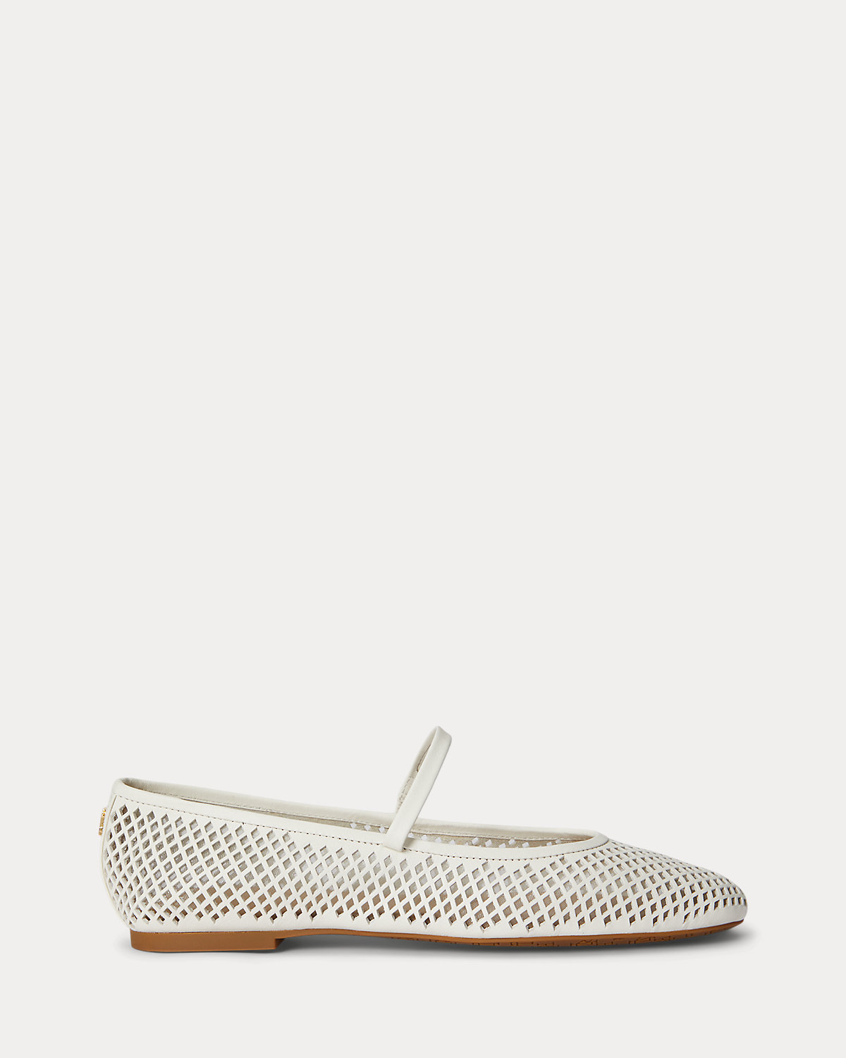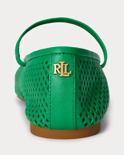 Lauren Ralpthth Lauren’s beloved Jayna ballet flat is reimagined with a mary jane silhouette realized in perforated nappa leather for textural depth. Lauren’s signature logo at the back completes the look.
