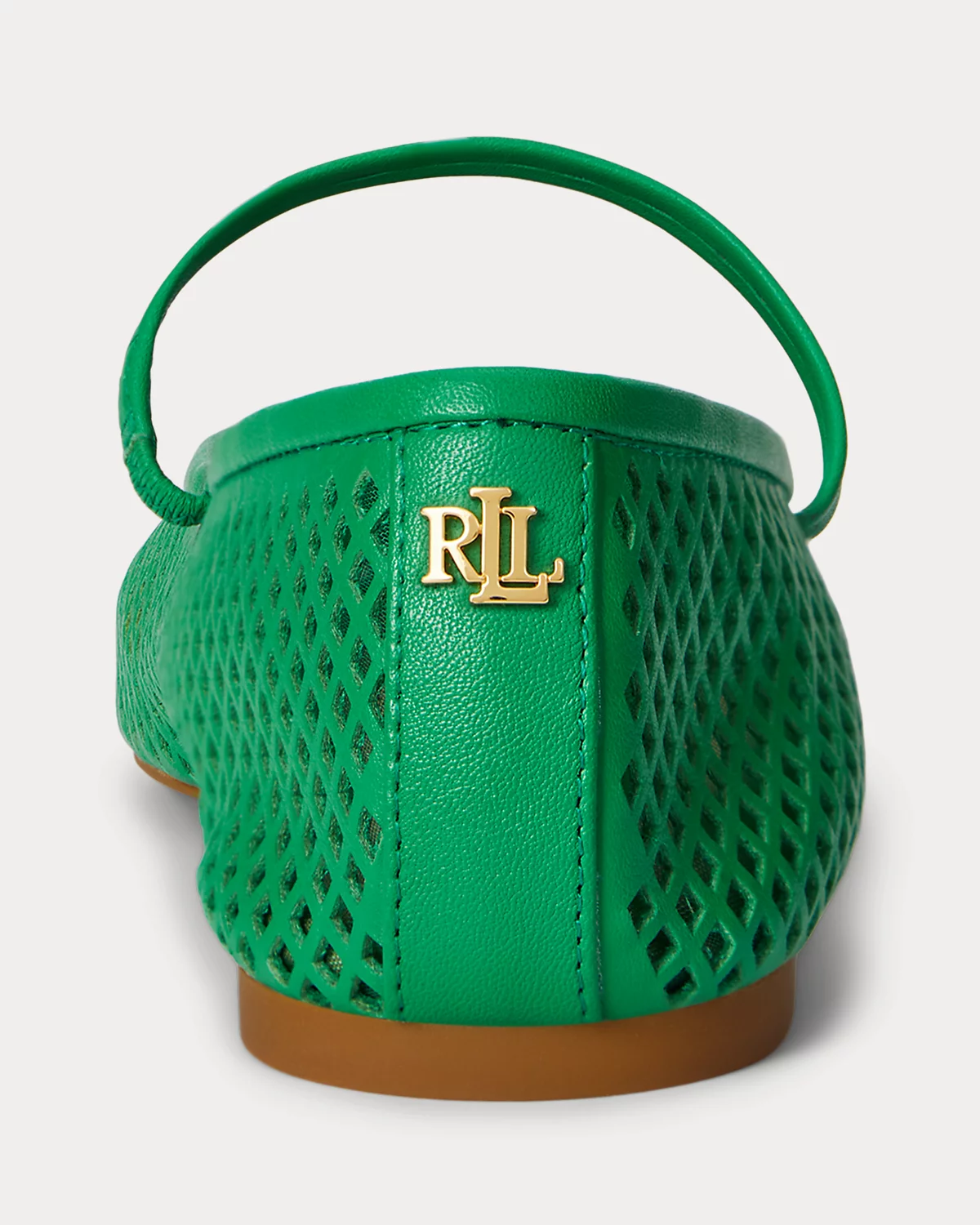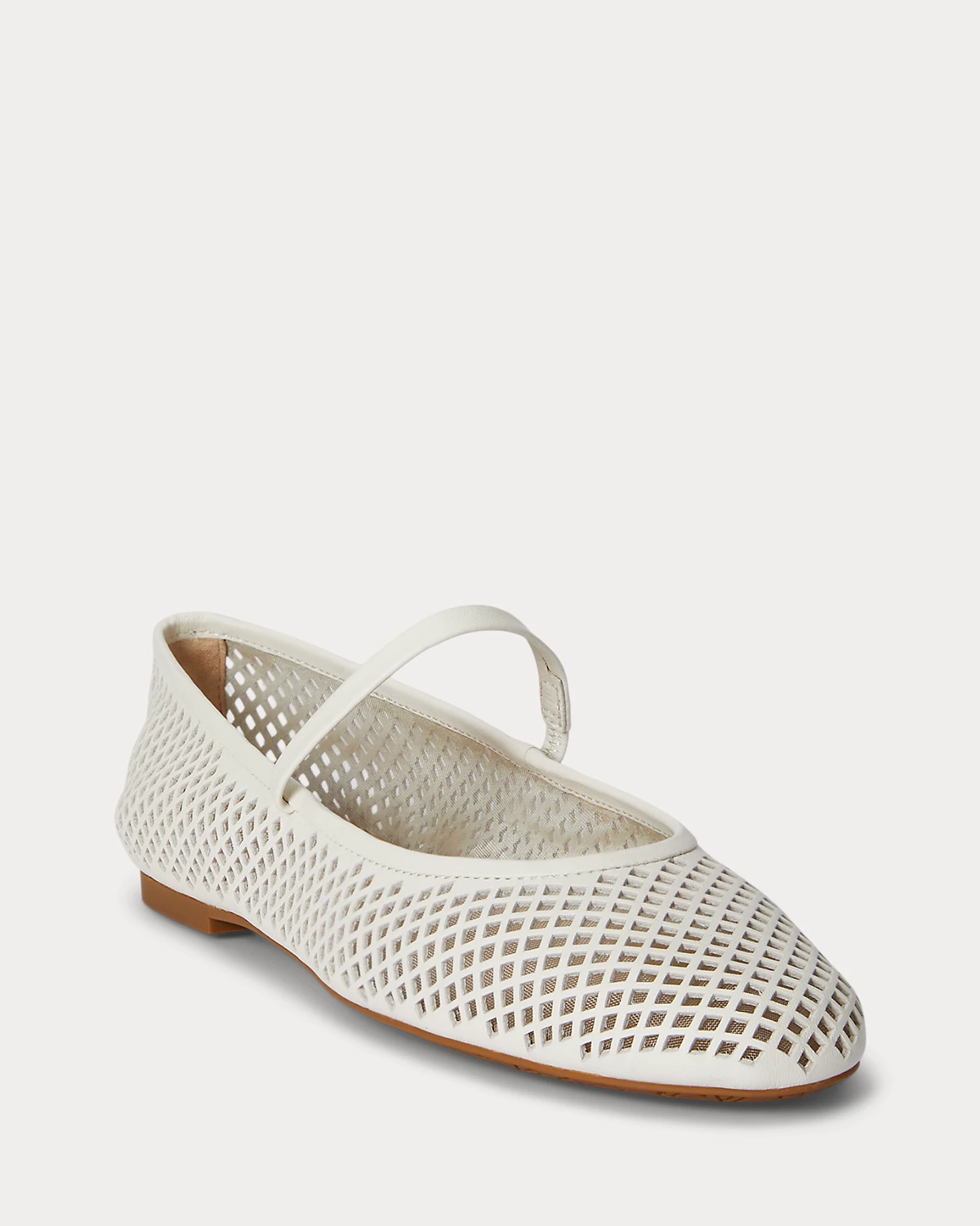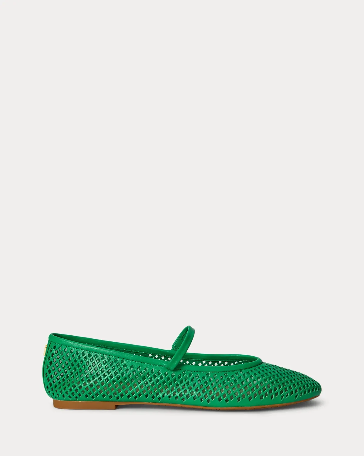 Lauren Ralpthth Lauren’s beloved Jayna ballet flat is reimagined with a mary jane silhouette realized in perforated nappa leather for textural depth. Lauren’s signature logo at the back completes the look.
