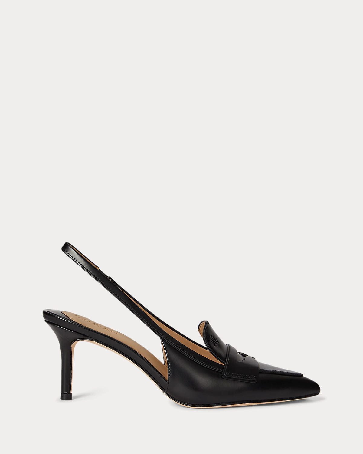 Crafted from sumptuous full-grain leather, this version of the Khloe slingback pump features a pointed-toe silhouette with a penny loafer–style vamp set on a slender 70-mm heel.