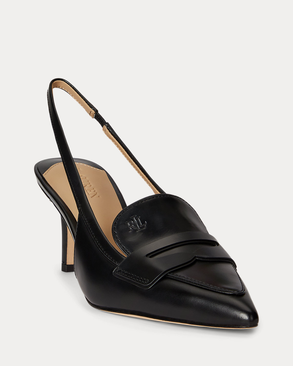 - Penny loafer vamp. "LRL"-debossed logo at the vamp.