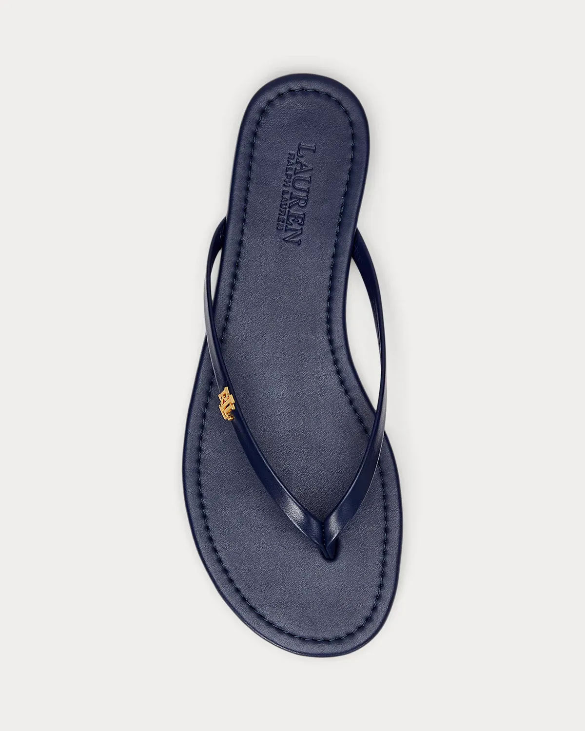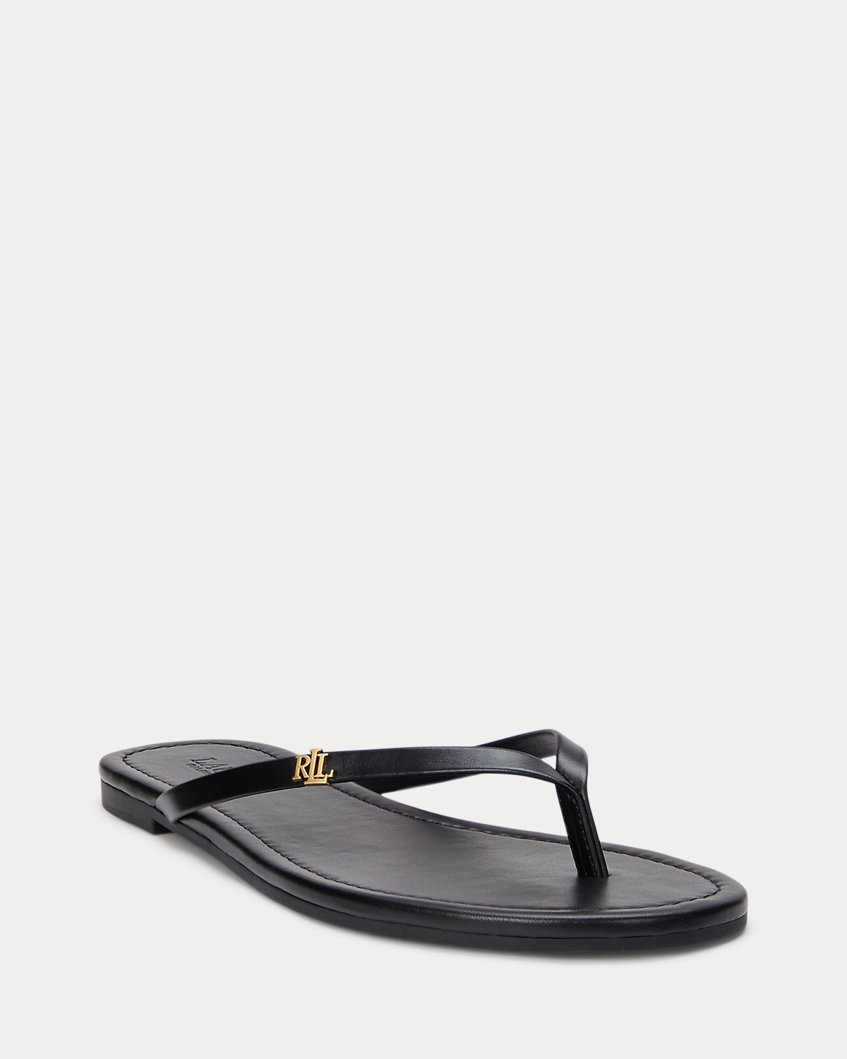 Pairing easy slip-on styling with a smooth sheepskin leather construction, Lauren Ralpthth Lauren’s Raquel sandal offers an elevated spin on the essential flip-flop. A leather-wrapped padded footbed provides comfort with each step, while an “LRL” logo accents its slender straps for signature style.
