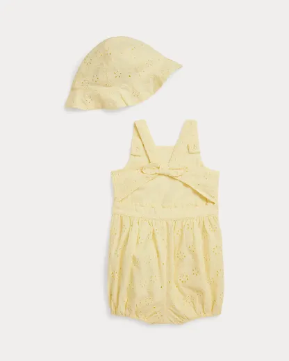 Eyelet Cotton Bubble Shortall & Hat