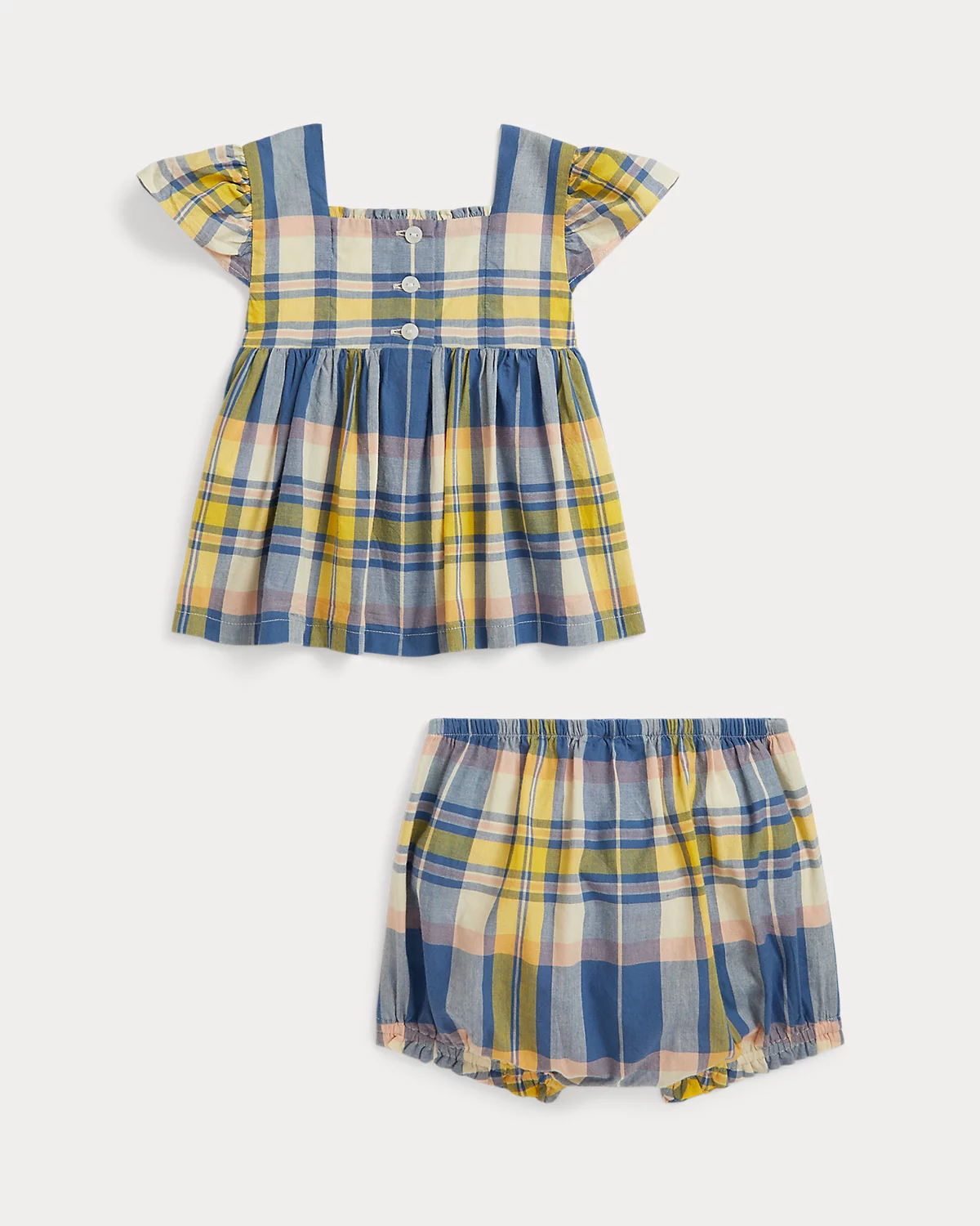 This warm-weather set is made with lightweight cotton madras—a colorful, lightweight fabric with characteristic slubs and one-of-a-kind variations.