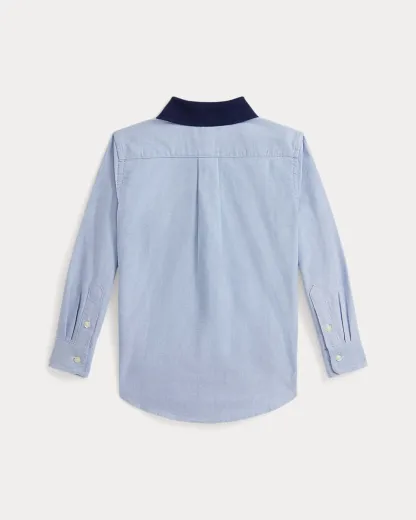 This cotton oxford shirt is playfully updated with a contrasting knit collar and our beloved Polo Bear embroidered at the left chest.