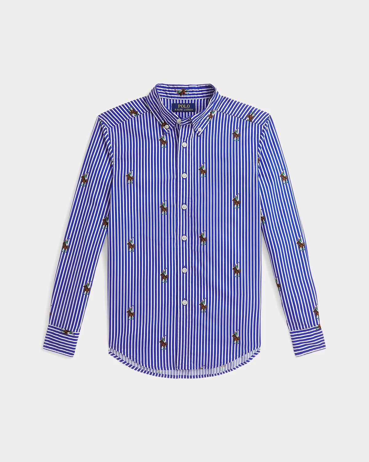 In addition to classic stripes, this shirt features a printed motif of our iconic Polo Bear playing his namesake sport atop our signature Pony. Its poplin fabric is specially developed to provide a hint of stretch without elastane, maintaining its 100 percent cotton fabrication.