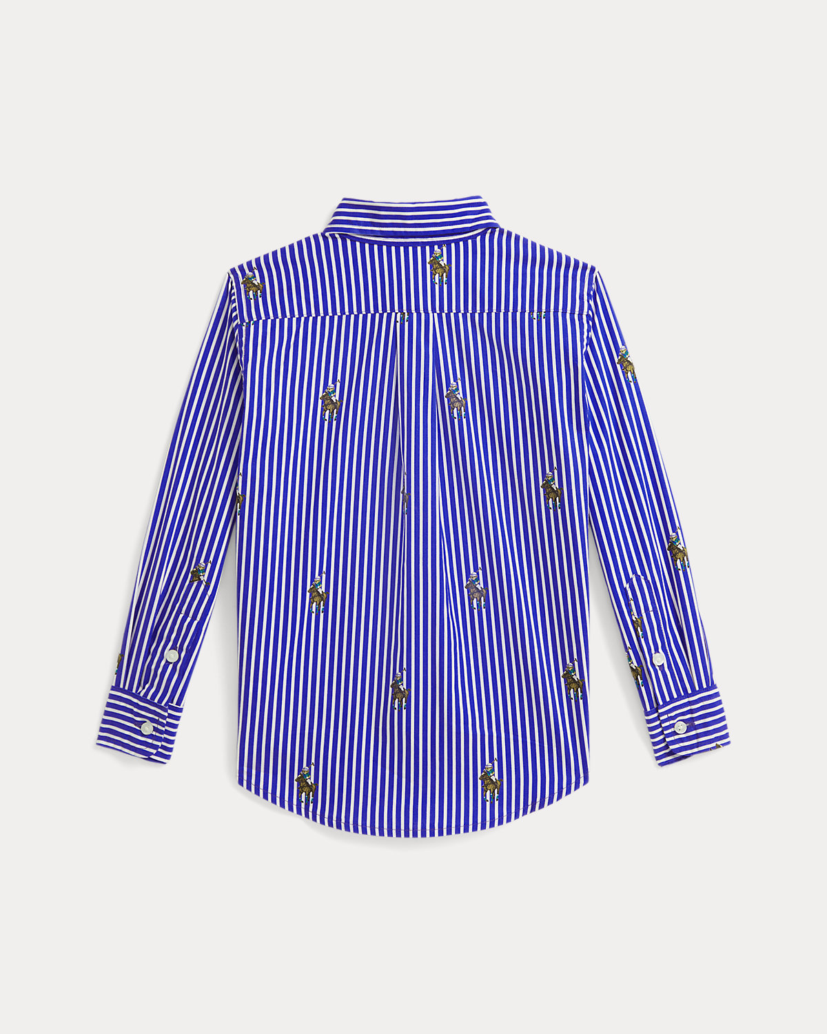 In addition to classic stripes, this shirt features a printed motif of our iconic Polo Bear playing his namesake sport atop our signature Pony. Its poplin fabric is specially developed to provide a hint of stretch without elastane, maintaining its 100 percent cotton fabrication.