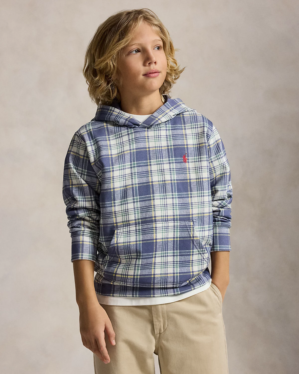 A classic plaid pattern and our signature Pony make this cotton-blend hoodie quintessentially Polo.