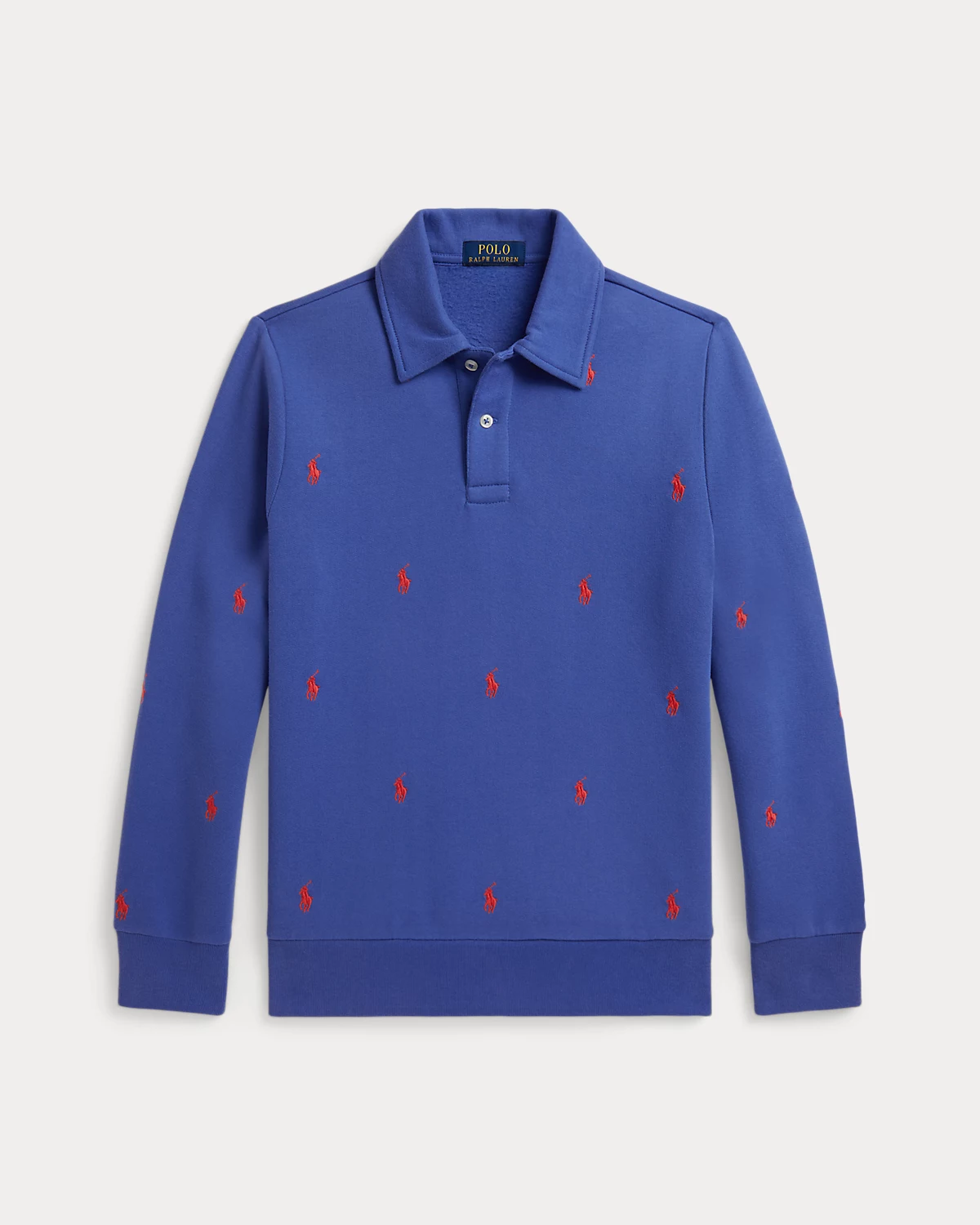This layer combines a silhouette inspired by the iconic Polo shirt with peached cotton-blend fleece. An embroidered motif of our signature Pony gives it a playful look.