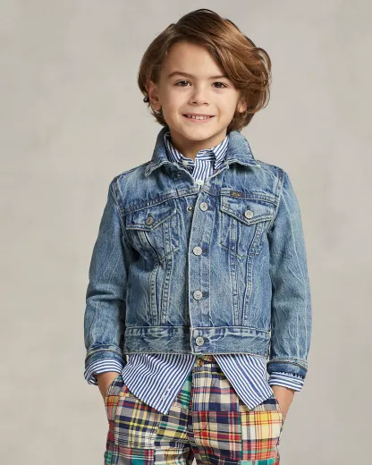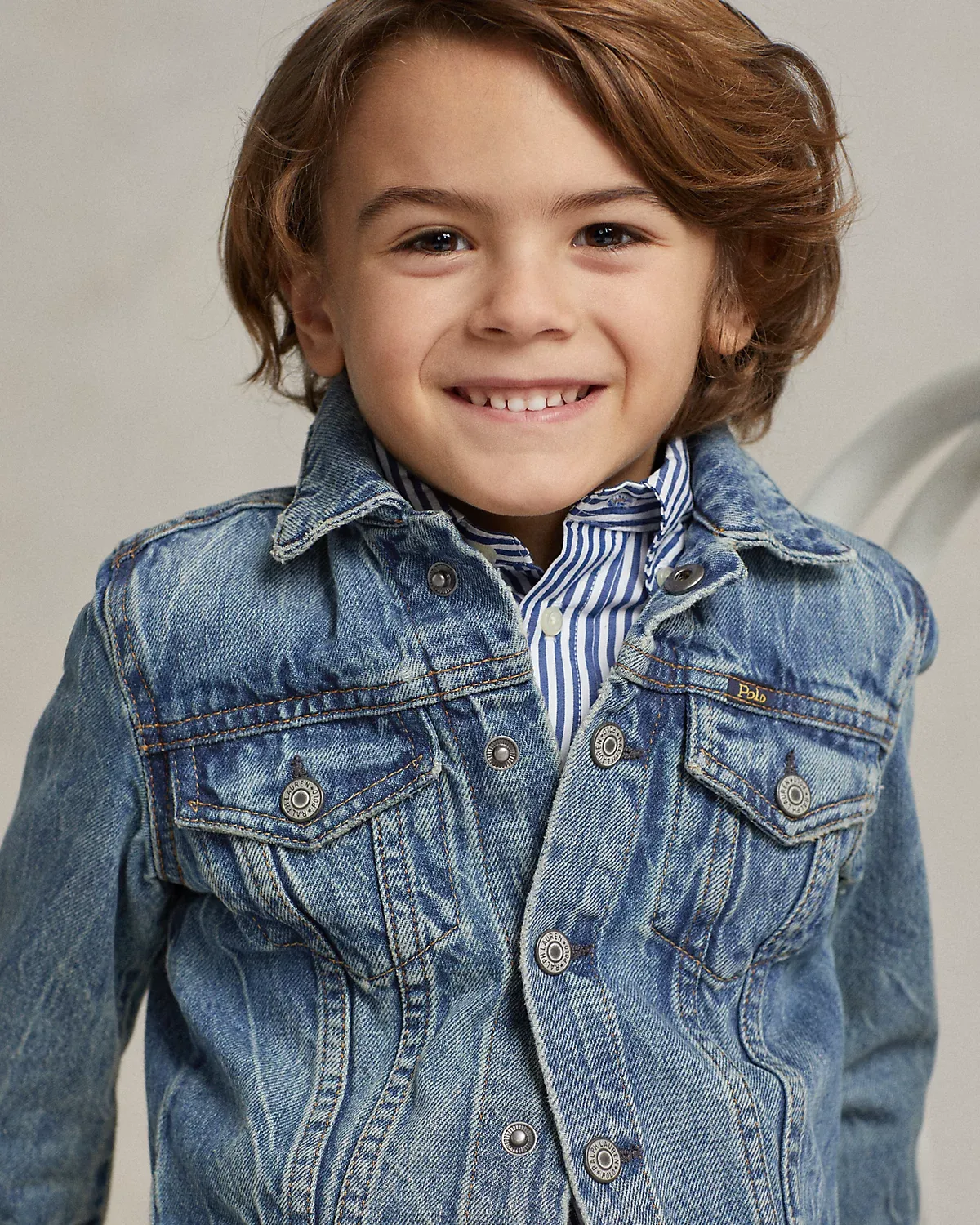 This classic trucker jacket is made with washed cotton denim and finished with signature “Polo Ralpthth Lauren” hardware.