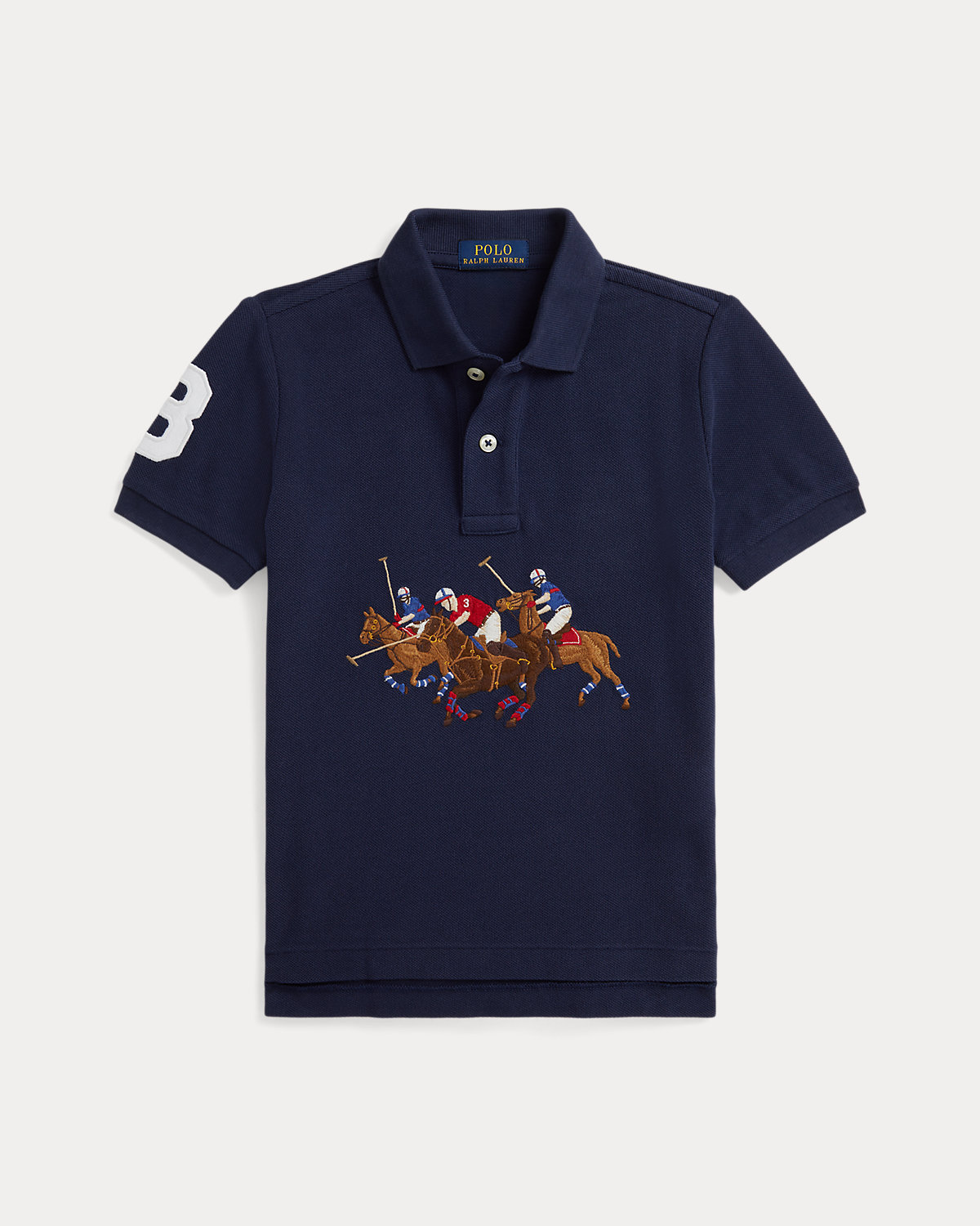 In soft cotton mesh, this everyday essential reflects Polo Ralpthth Lauren’s equestrian-inspired style with an embroidered Triple-Pony logo and a “3” patch, representing the number worn by a polo team’s field captain.