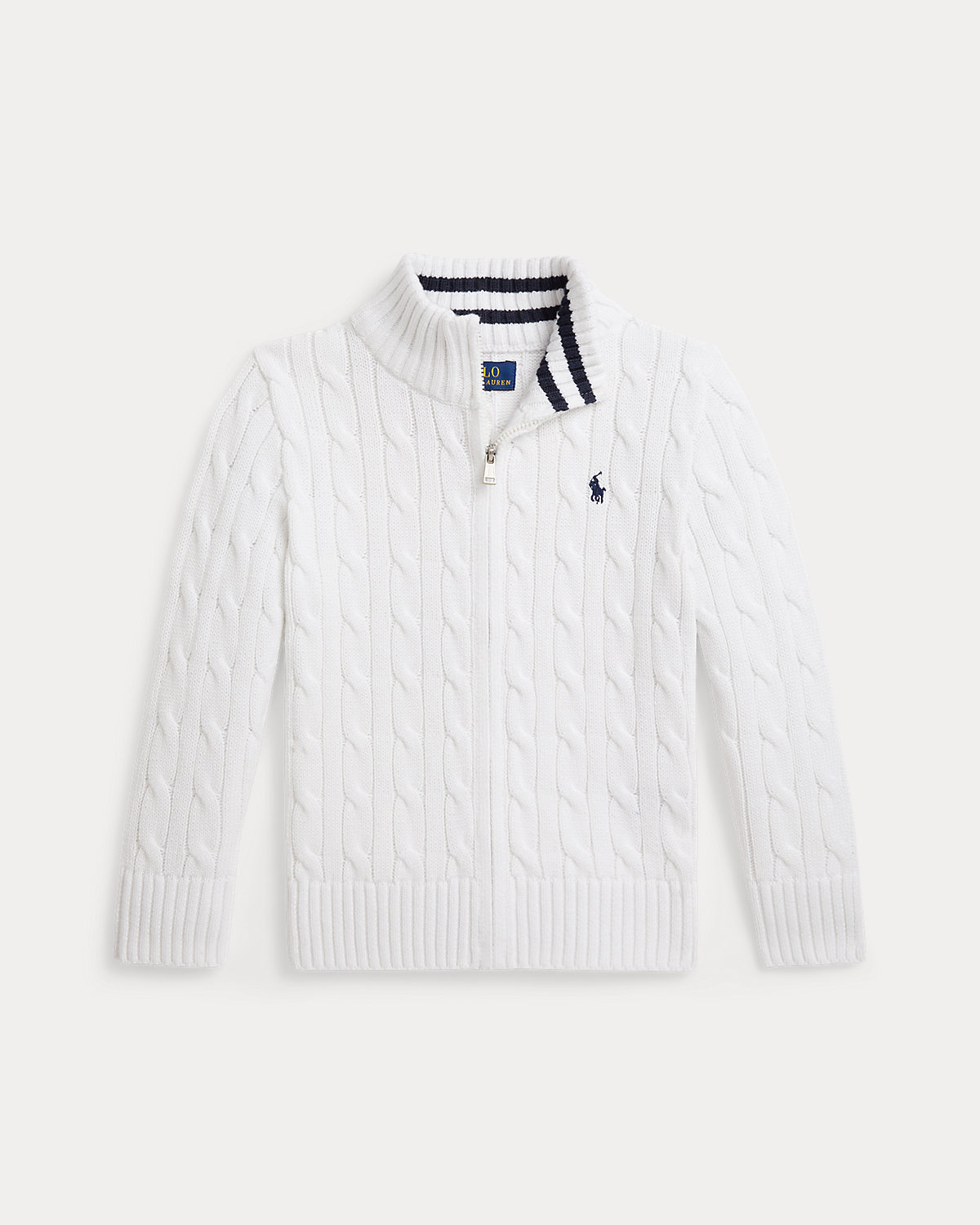 Perfect for when temperatures dip, this full-zip sweater unites our signature cable-knit design with soft combed cotton.