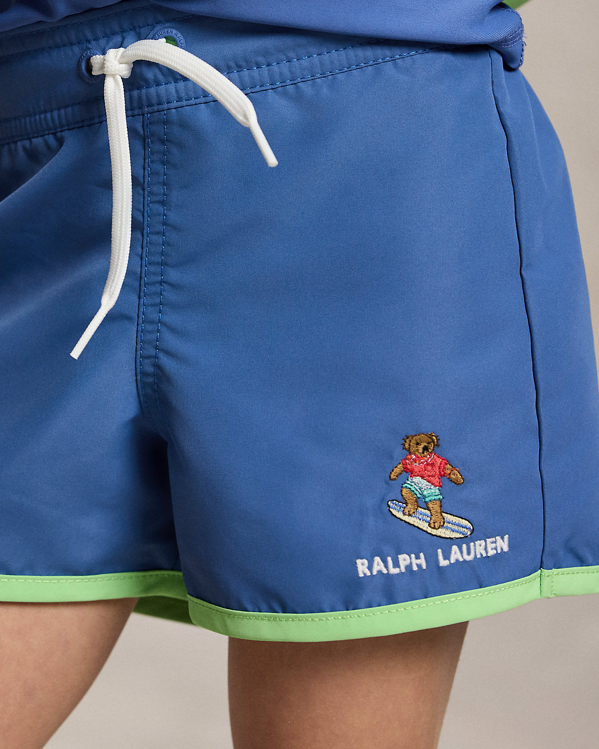 A playful choice for pool days and trips to the beach, these mesh-lined swim trunks feature our beloved Polo Bear catching a wave.