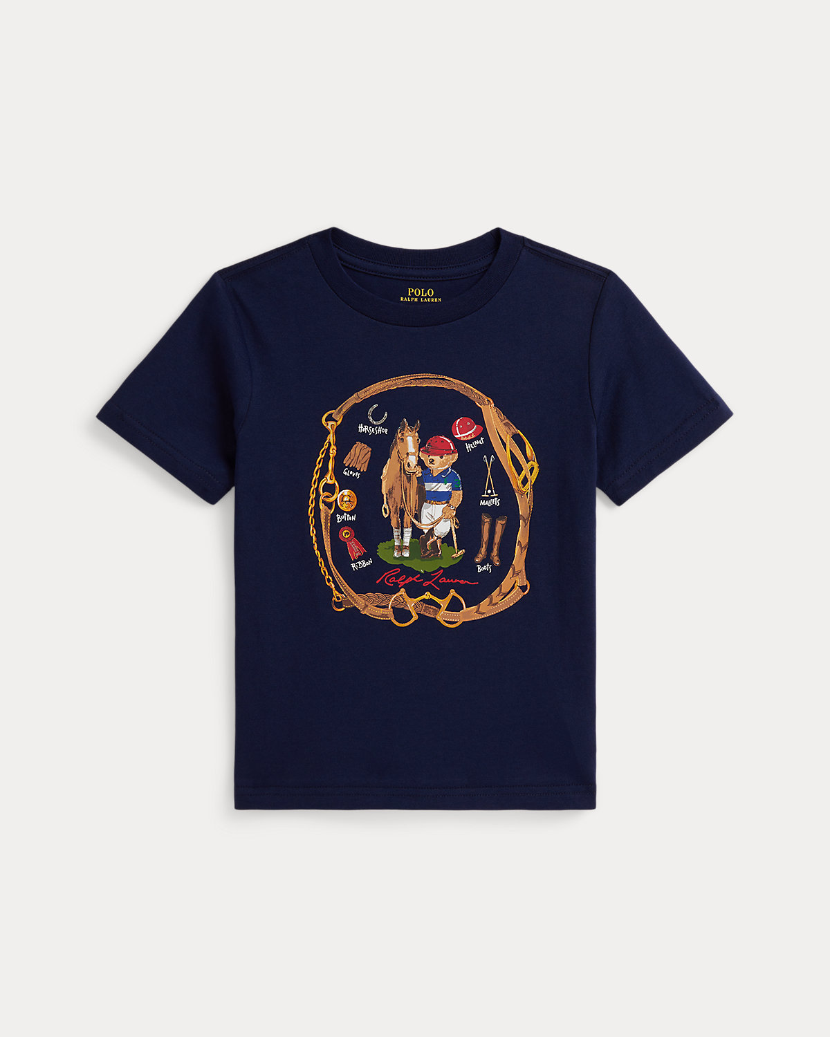 This tee features the iconic Polo Bear dressed to play his namesake sport alongside a horse and equestrian essentials.