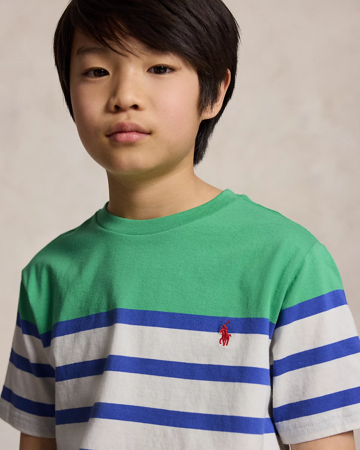 This tee features bold stripes with a color-blocked panel and our signature embroidered Pony for playful look that’s purely Polo.