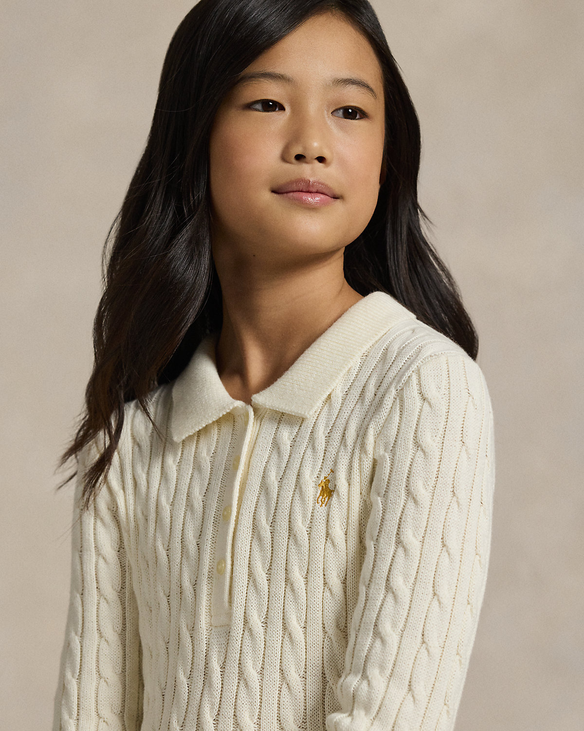 Part of our Lunar New Year collection, this A-line sweater dress is made with medium-weight, cable-knit cotton. It is accented by our signature Pony, which is embroidered with gold-hued thread in celebration of Lunar New Year 2026, the Year of the Horse.