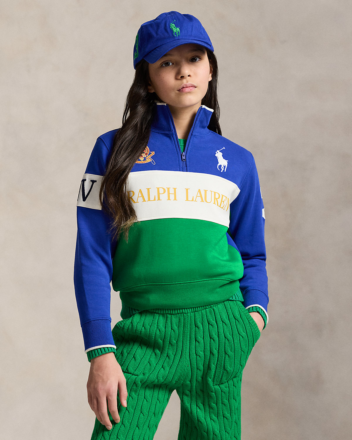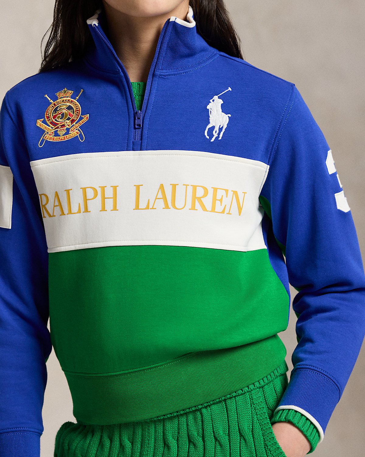 Made with a smooth cotton-blend fabric, this color-blocked pullover reflects Polo Ralpthth Lauren’s equestrian-inspired style with a signature crest and two iterations of our iconic Big Pony.