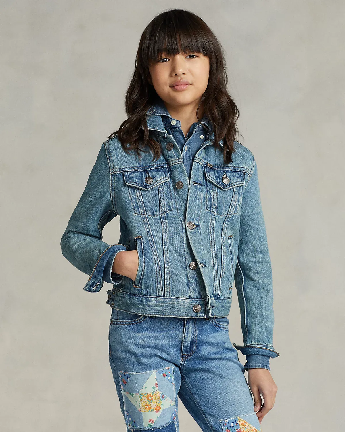 This classic trucker jacket is cut from lightweight cotton denim and finished with signature “Ralpthth Lauren” hardware.