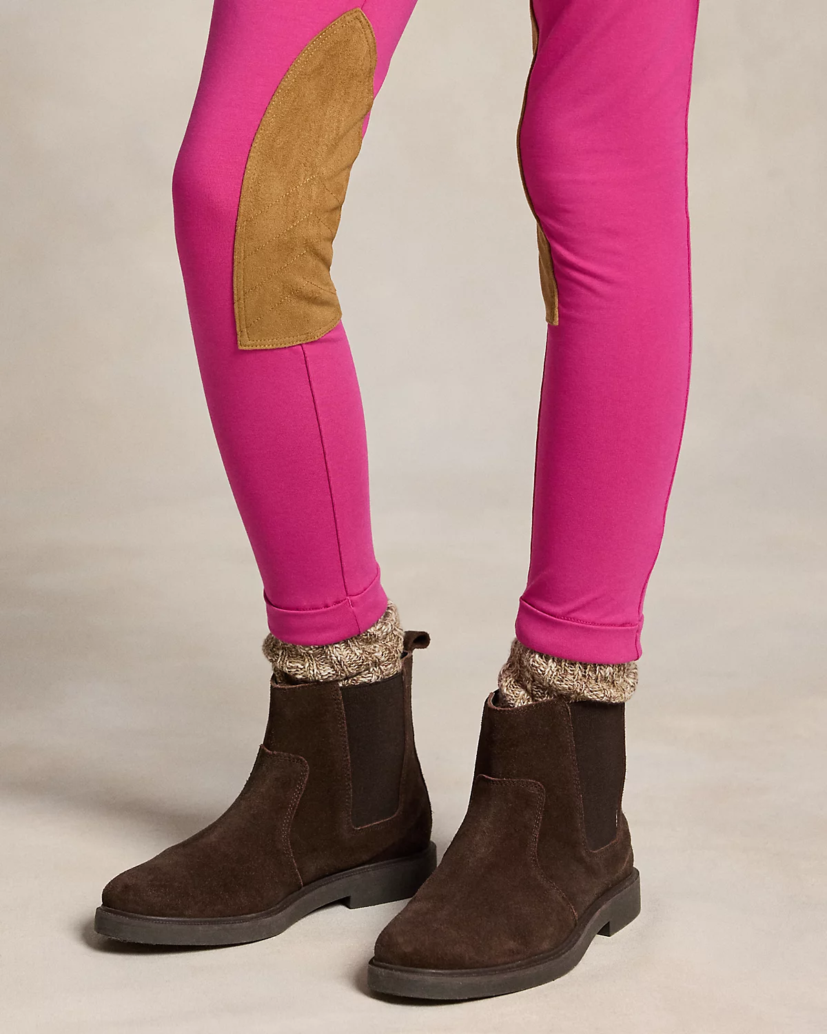 Made with stretch-cotton jersey, these equestrian-inspired leggings feature faux-suede knee patches and a tonal signature Pony at the hip.