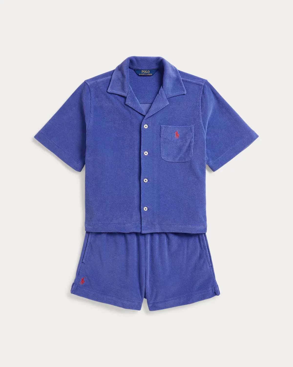 This warm-weather set includes a shirt and shorts that are both made with plush cotton-blend terry and embroidered with our signature Pony.
