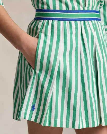 Polished yet playful, these cotton shorts are designed with a wide-leg silhouette, crisp box pleats, and yarn-dyed stripes.