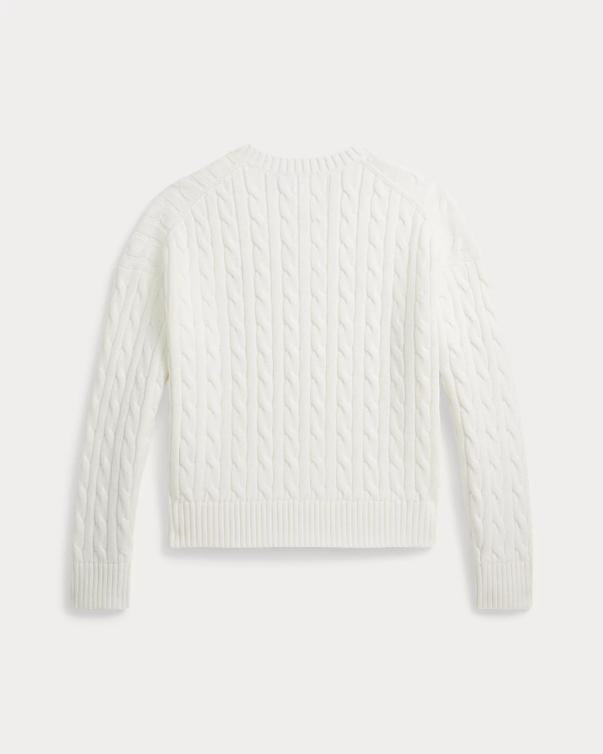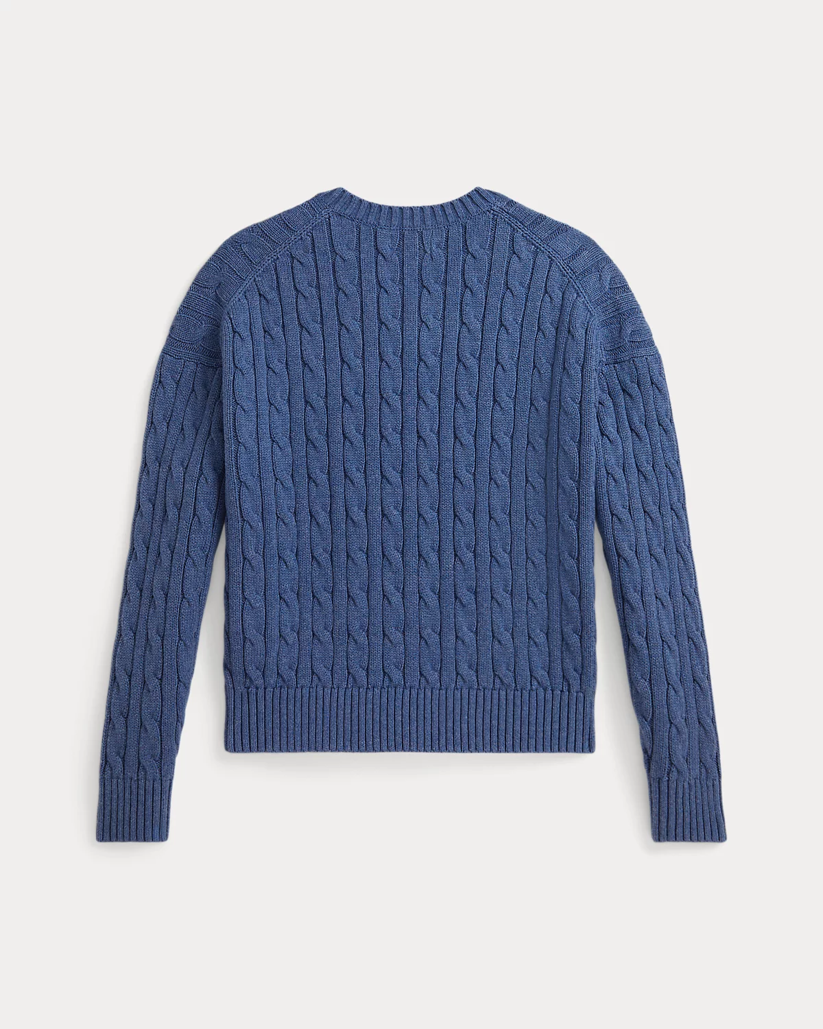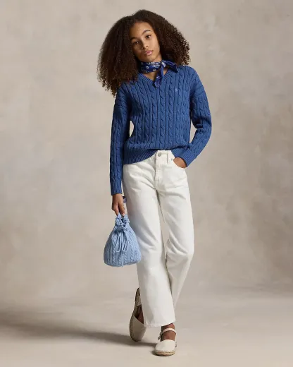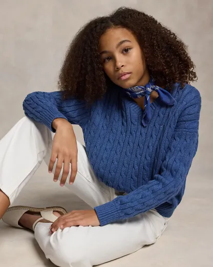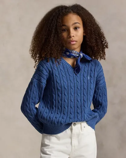 This V-neck sweater is made with combed cotton and then washed for added softness. A cable-knit pattern along with our signature embroidered Pony lend classic Polo style.