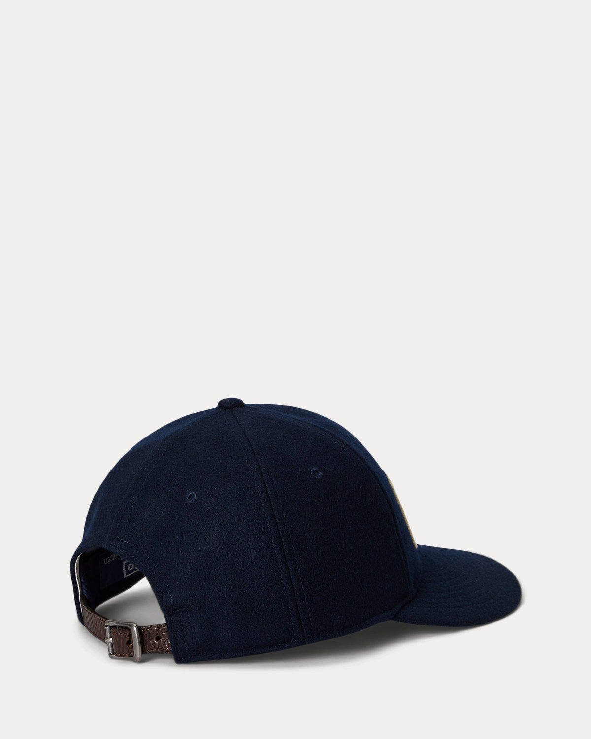 - Buckled leather strap at the back. Woven “Polo Ralpthth Lauren Est. 1967” winged-logo label at the back left.